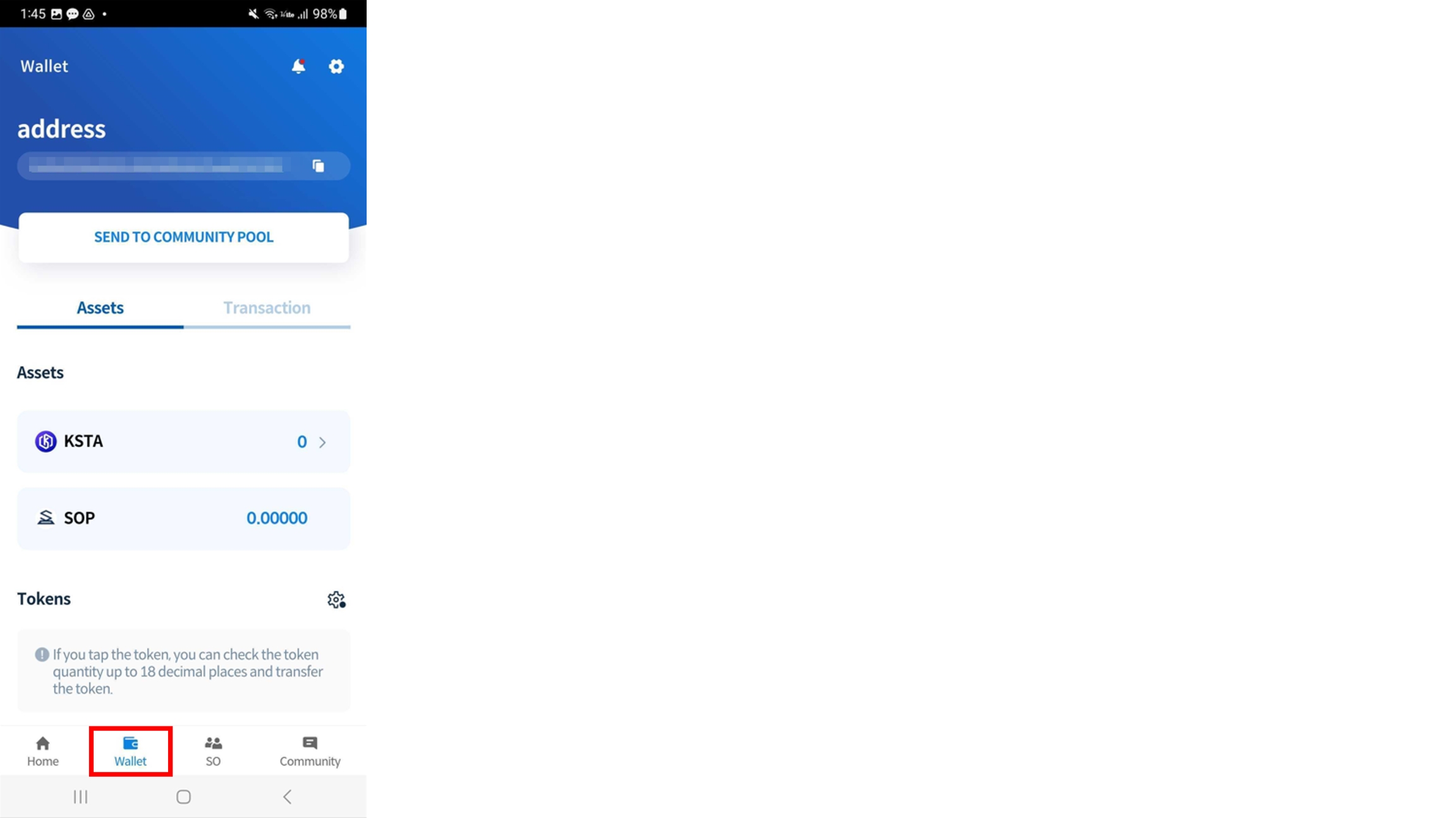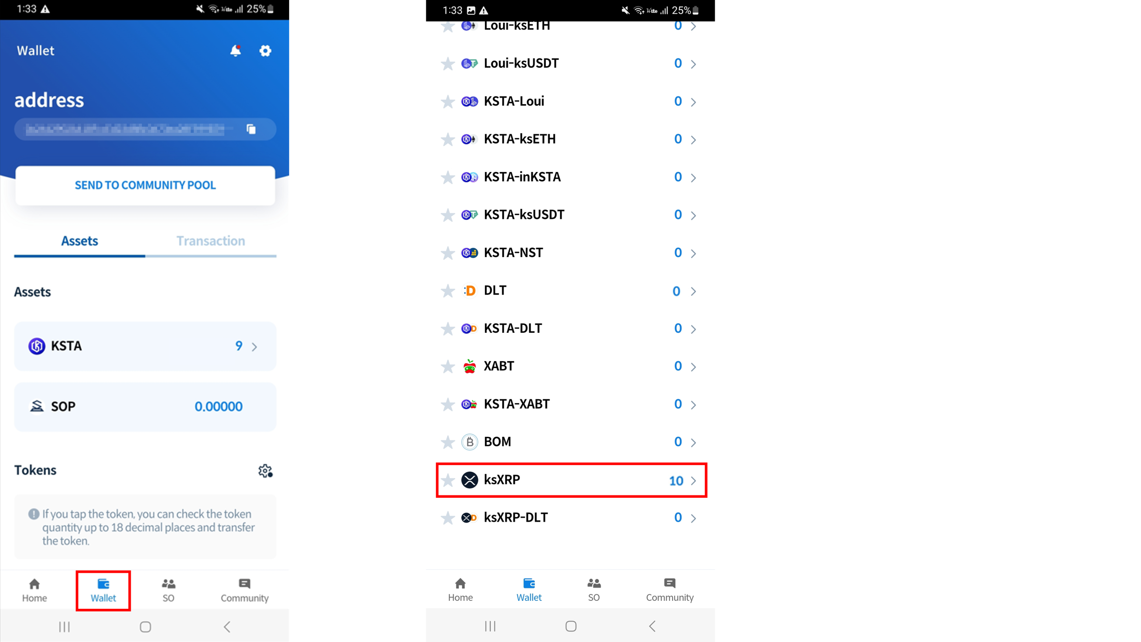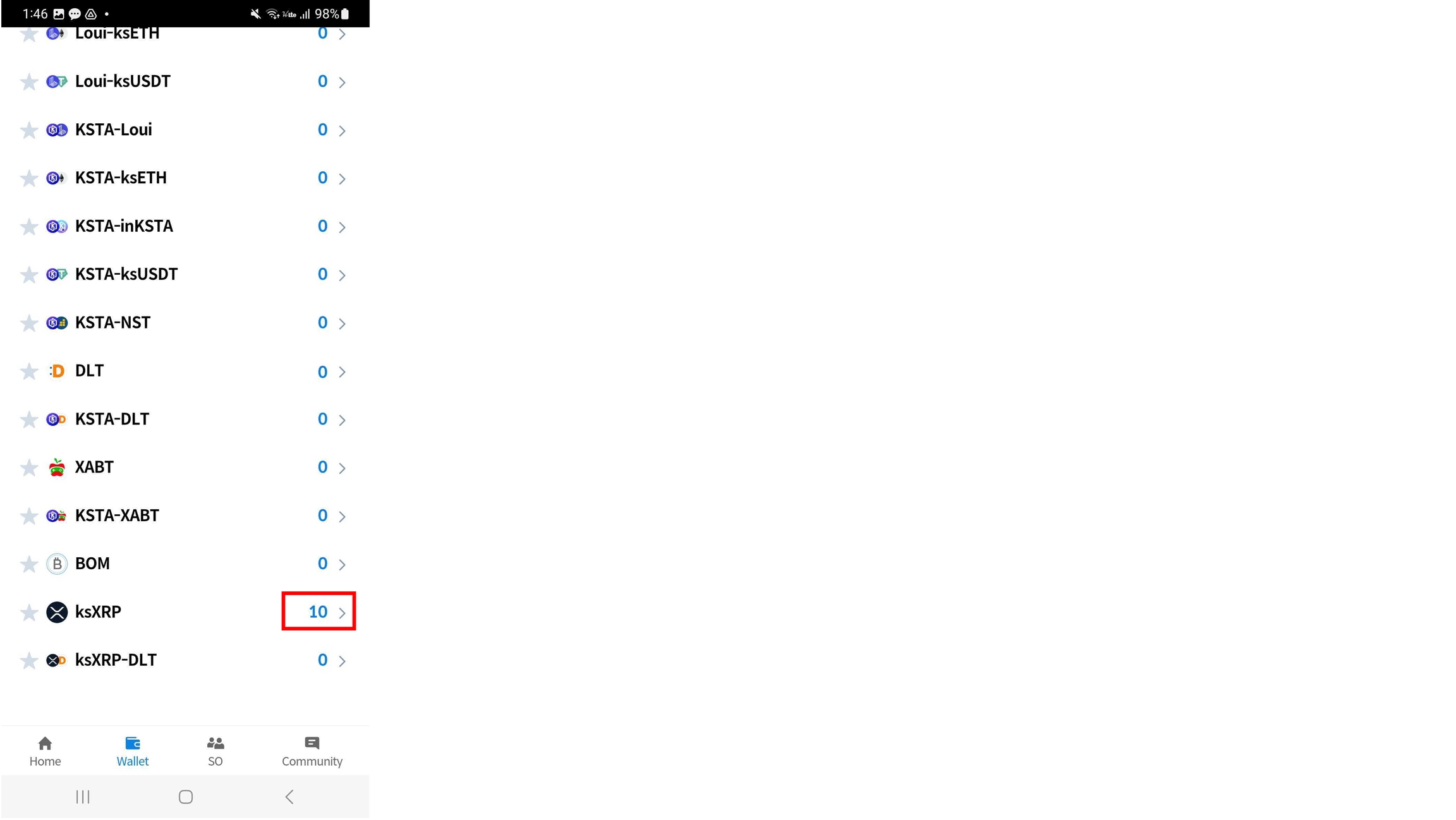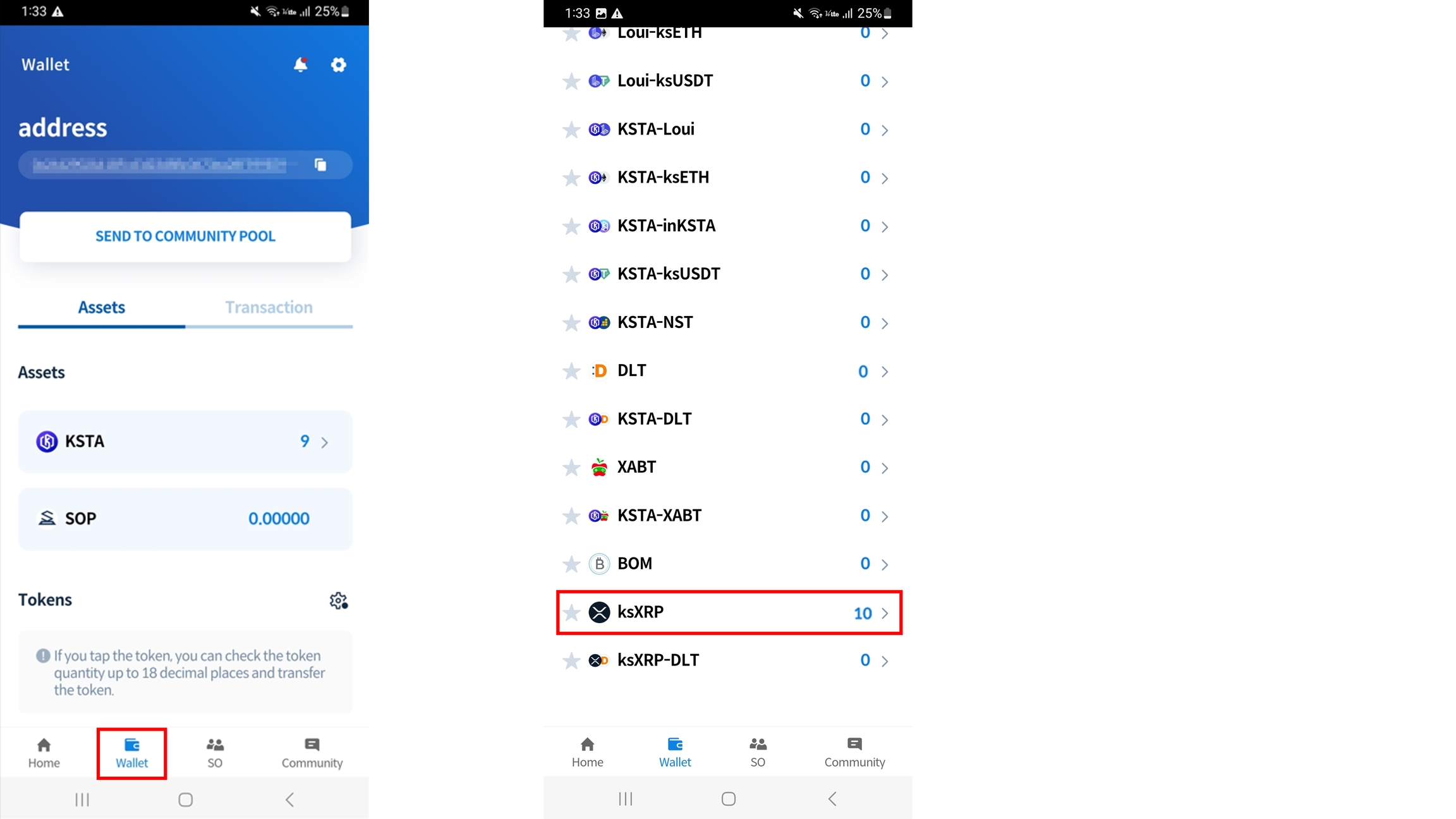 Tap ‘Wallet’ and select ‘ksXRP’ in the Tokens section below