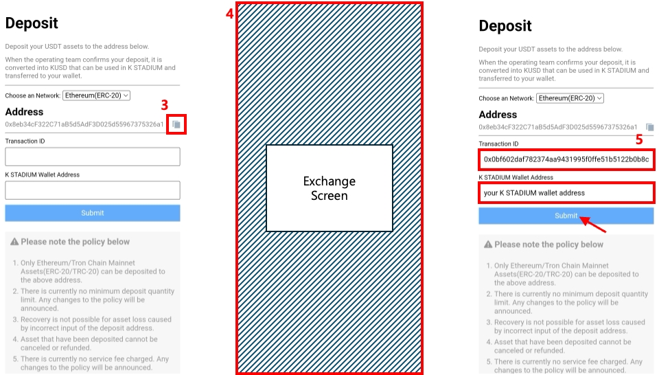 Send the assets from the exchange to the address you copied, and copy the Transaction ID