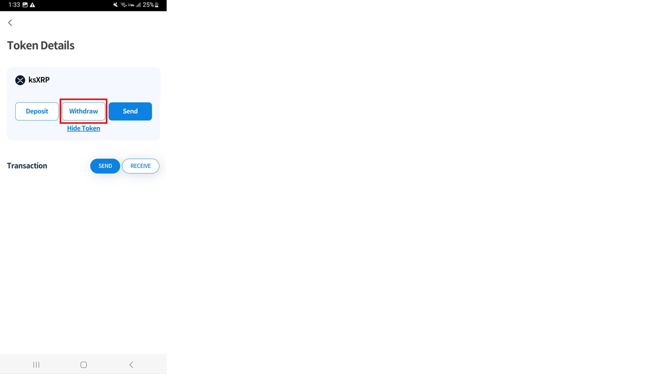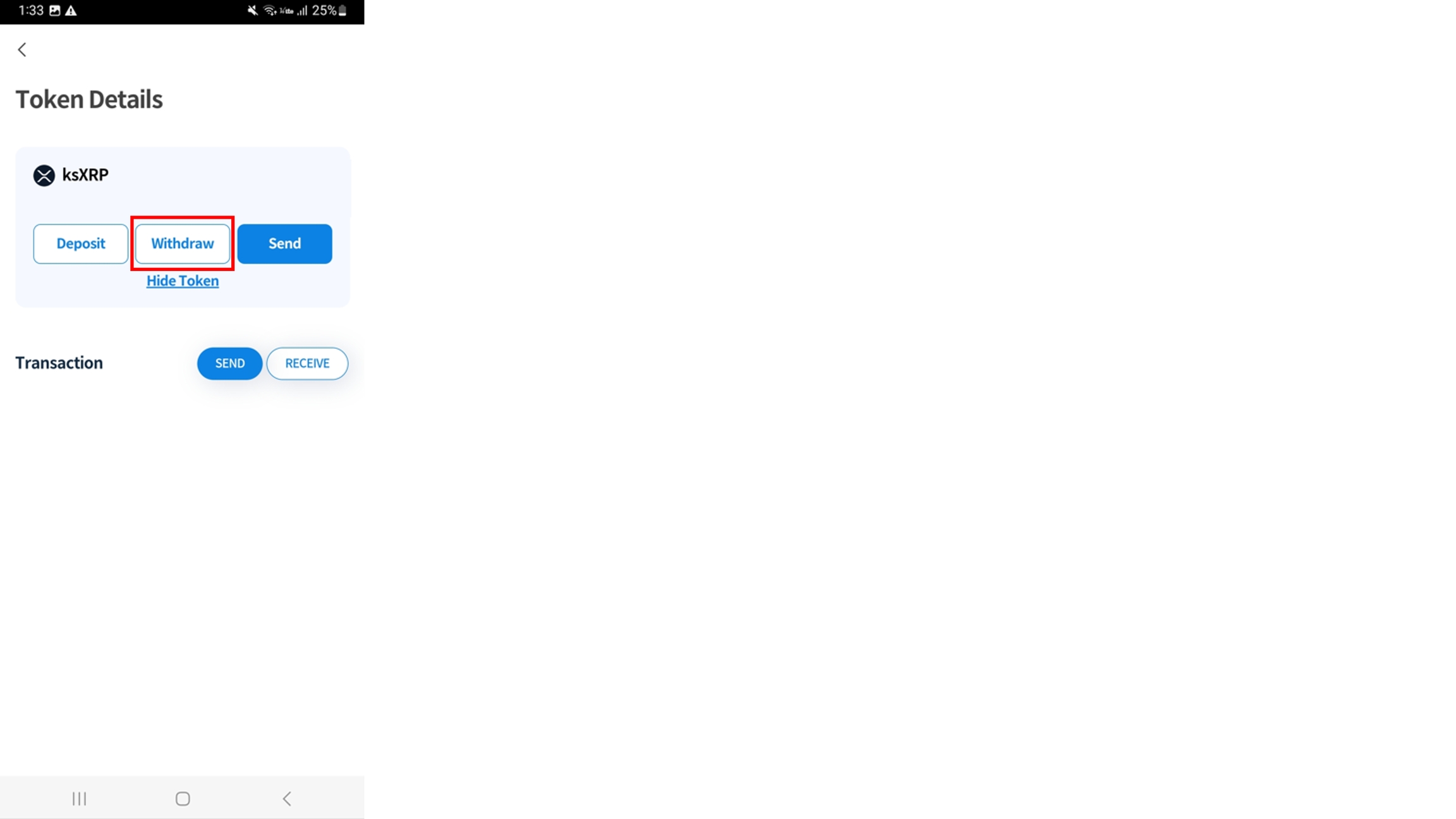 Tap ‘Withdraw’ button on the ksXRP Token Details screen