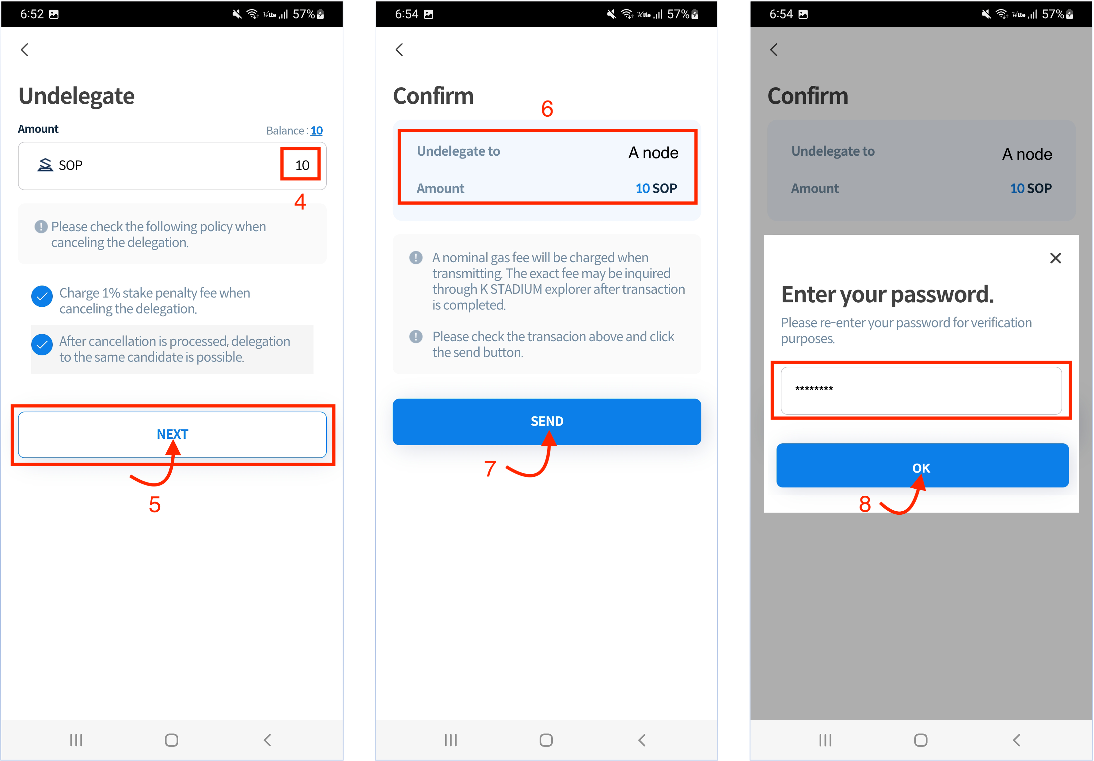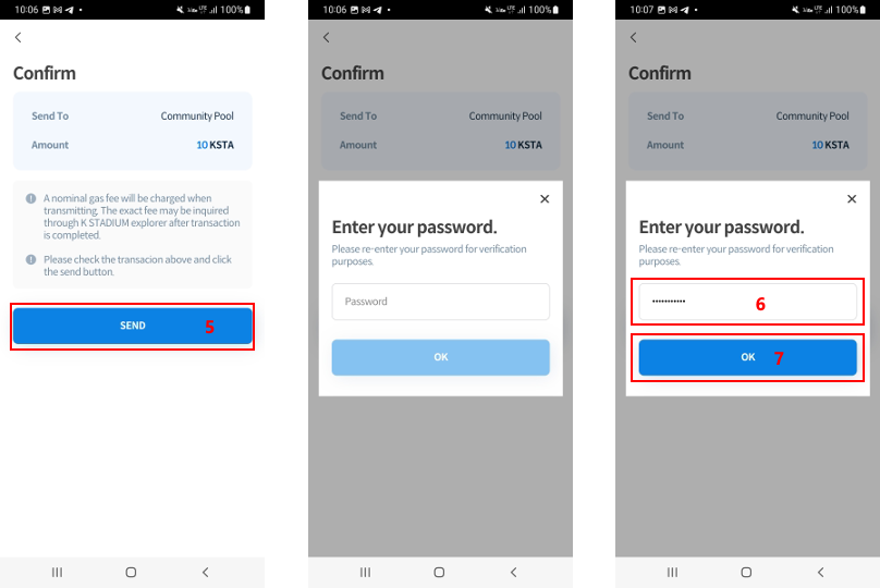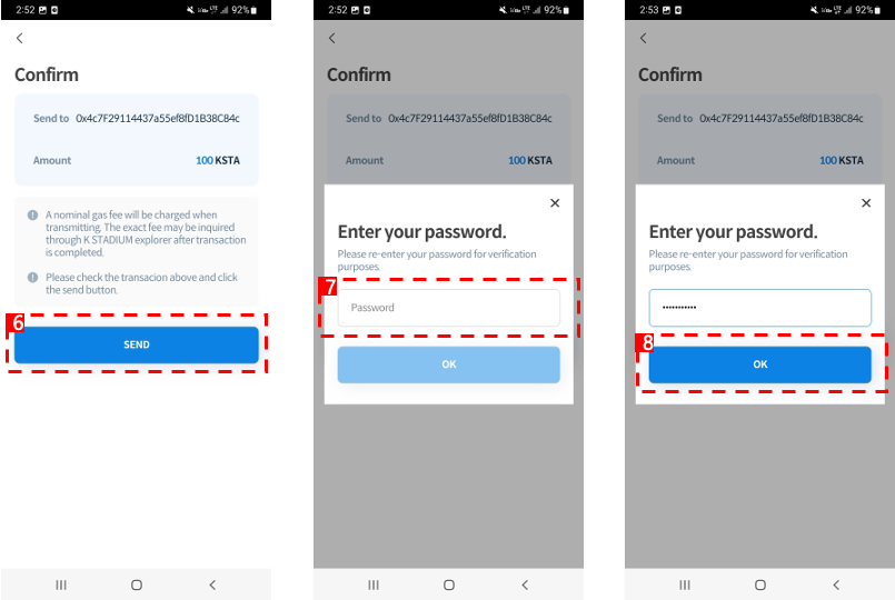 5\. Check the amount of KSTA, And tap the SEND button.