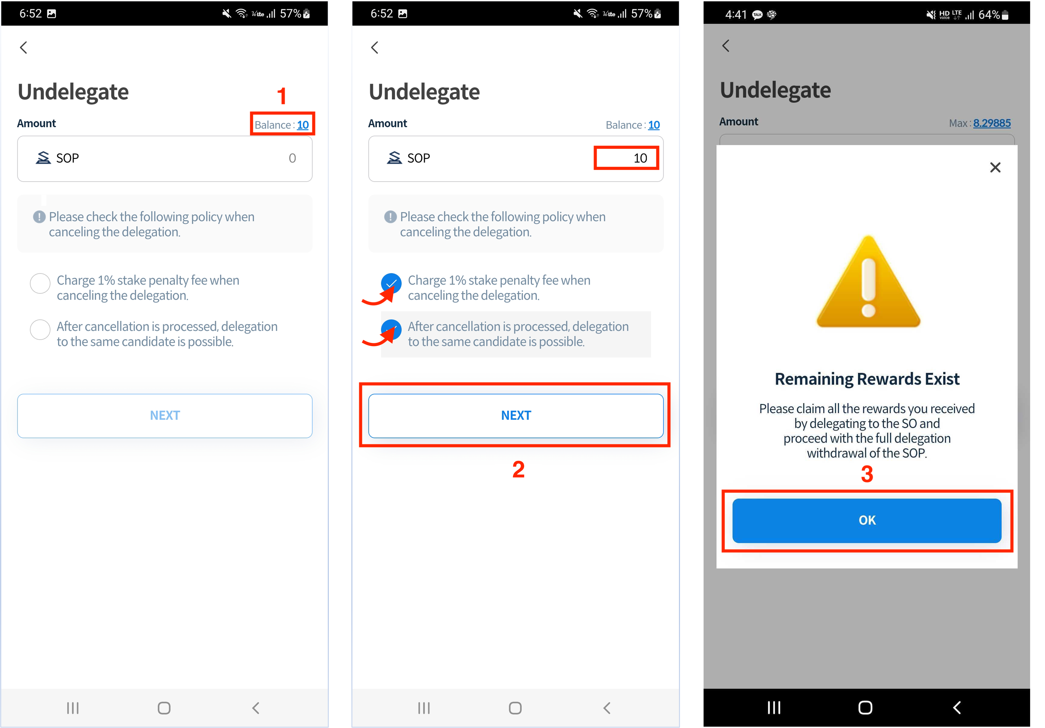 ### Withdrawal of all delegation \*if reward remains