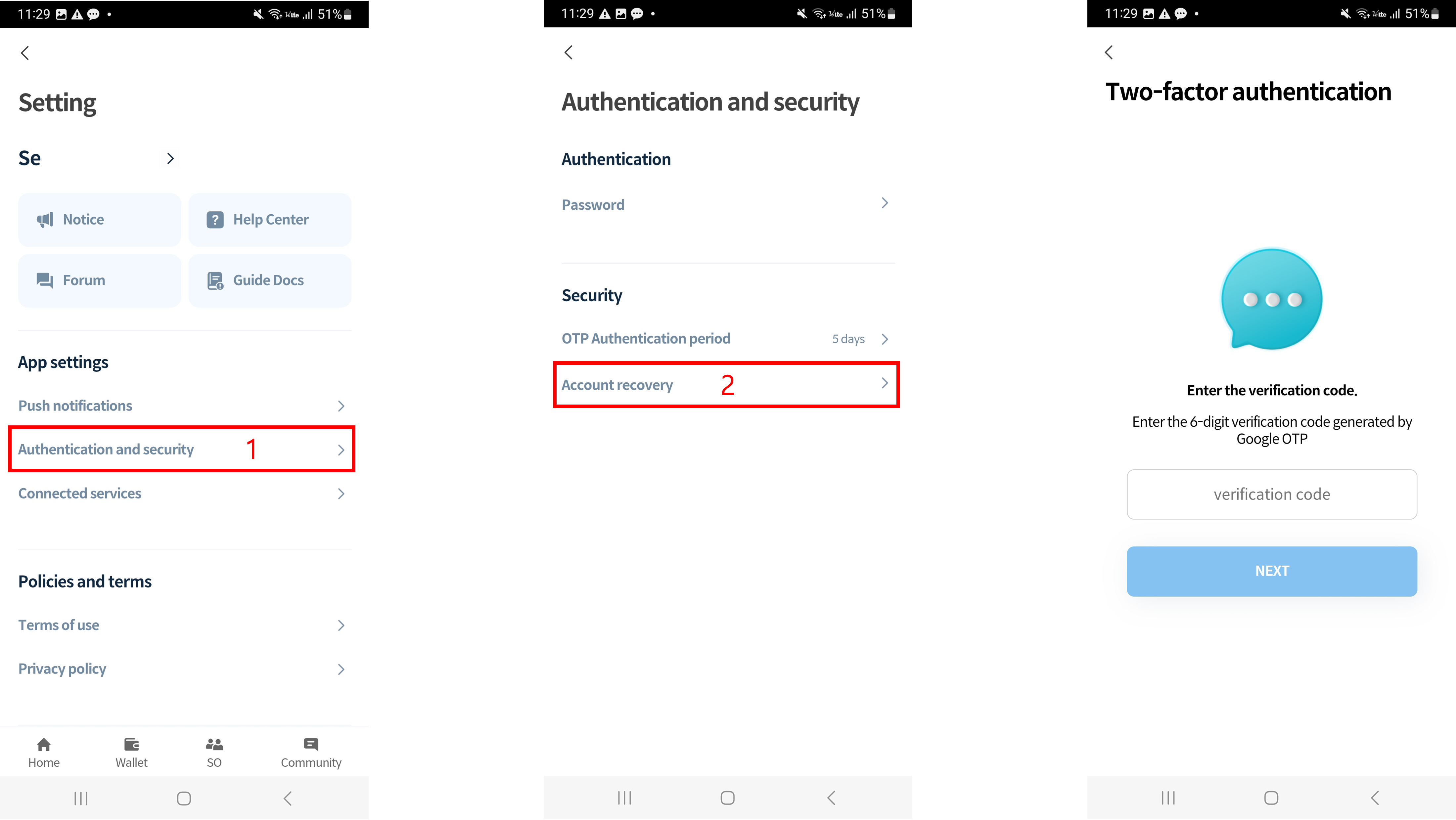 2\. Click 'Account recovery' and complete the authentication.