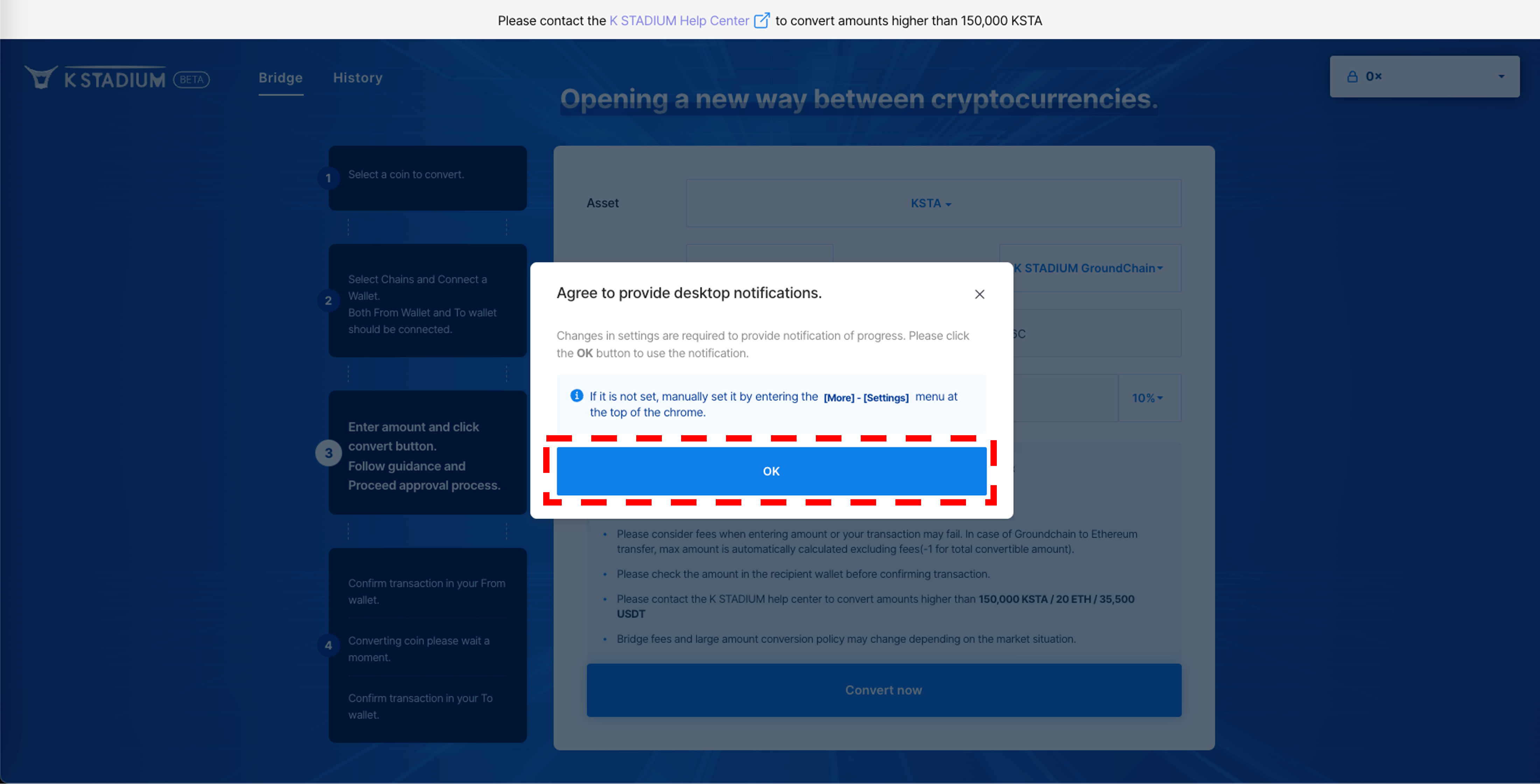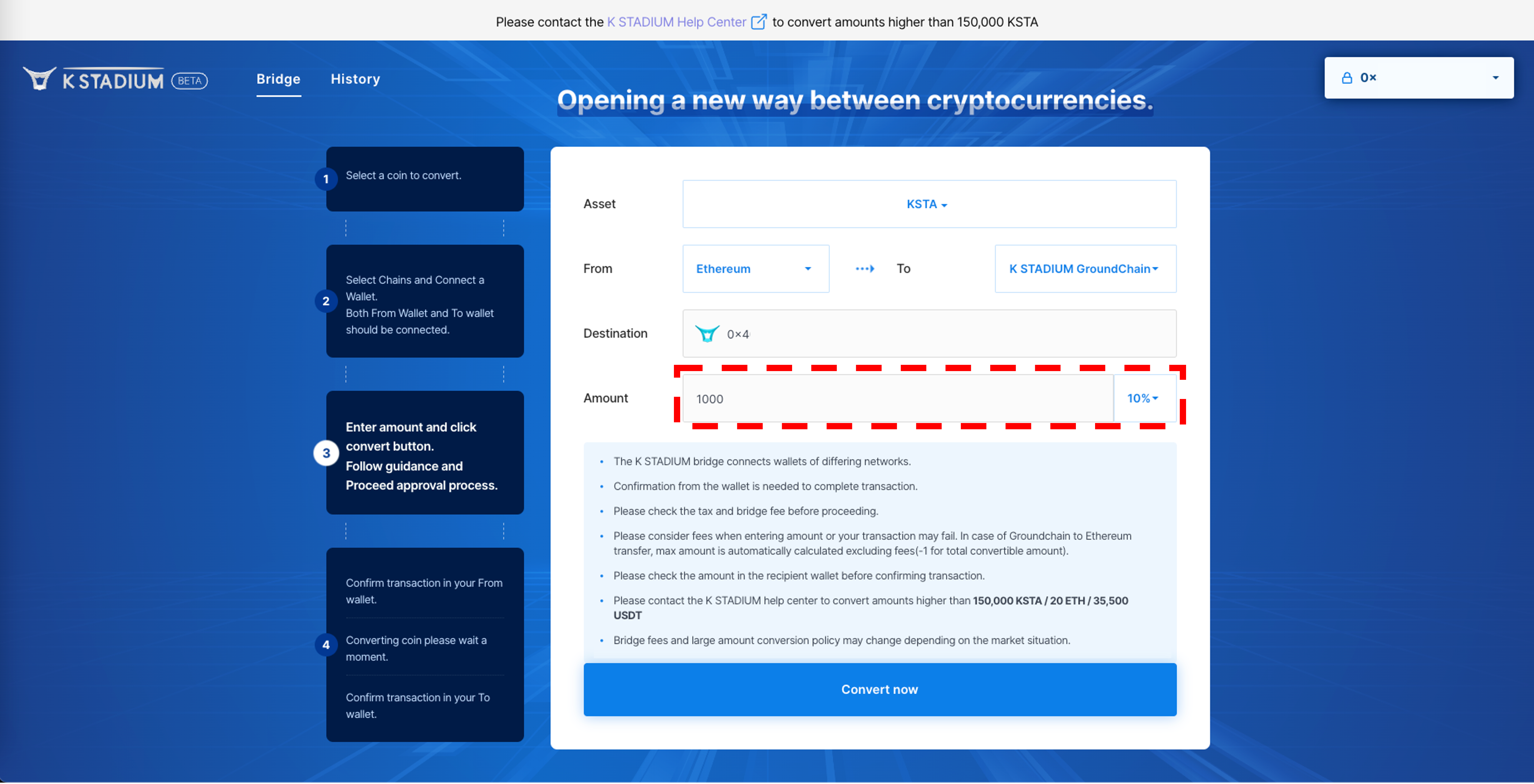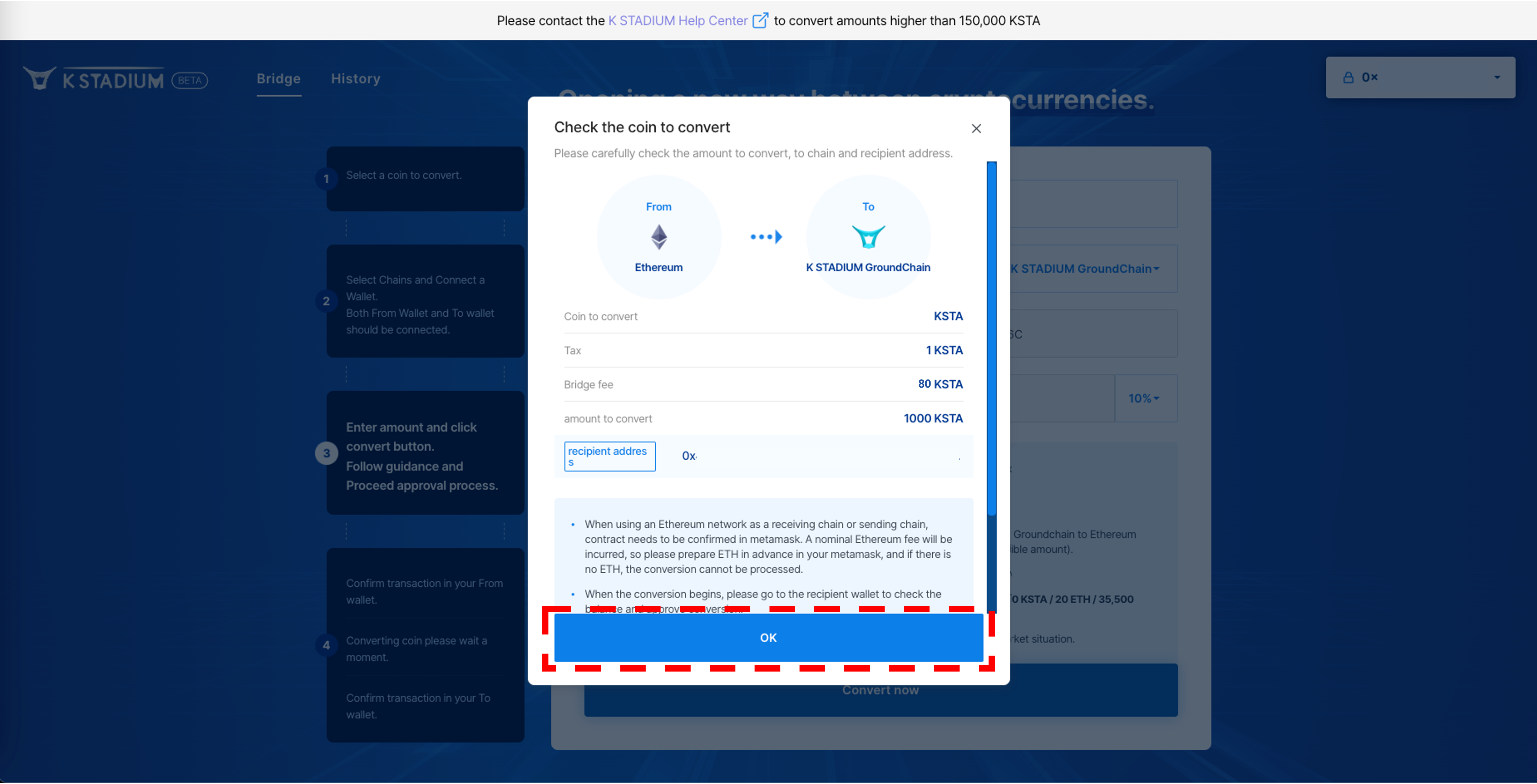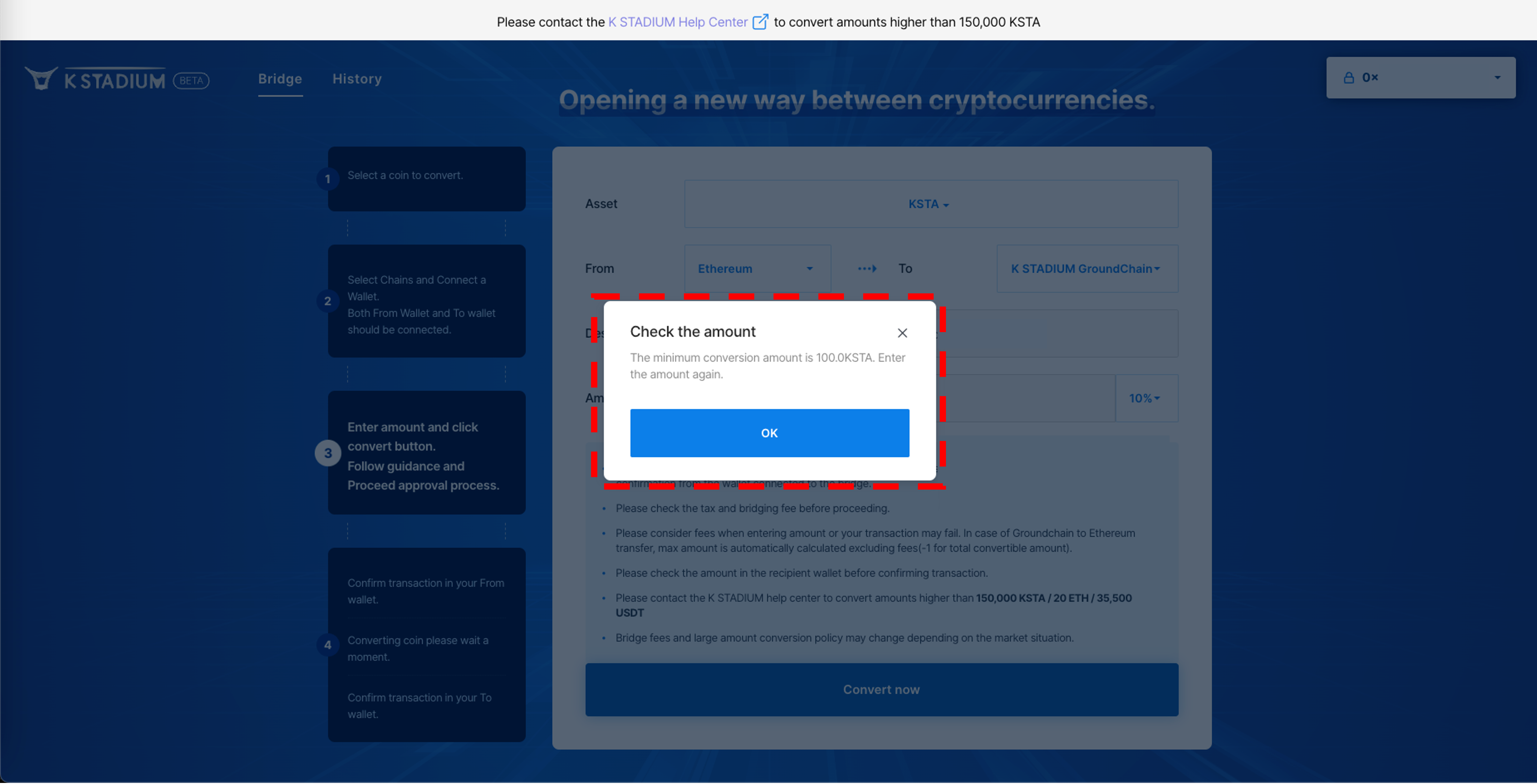 3\. Agree with the precautions, And enter the amount of KSTA you want to remit.