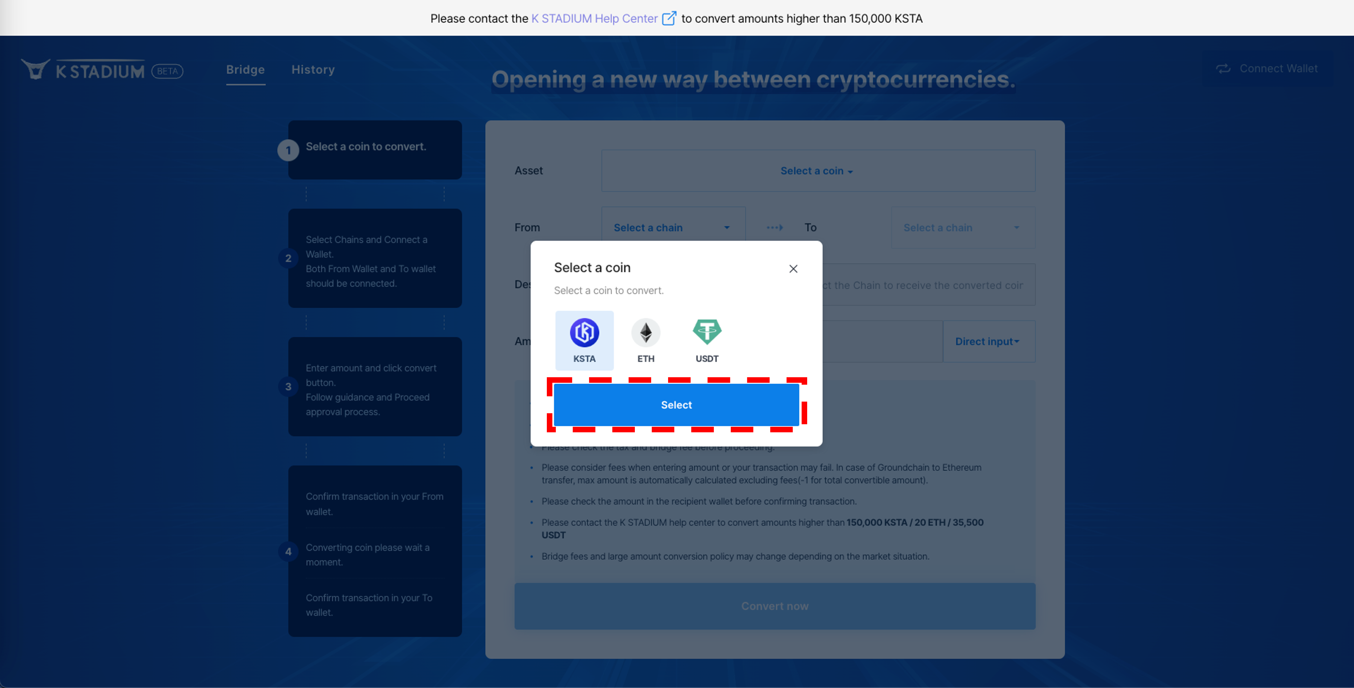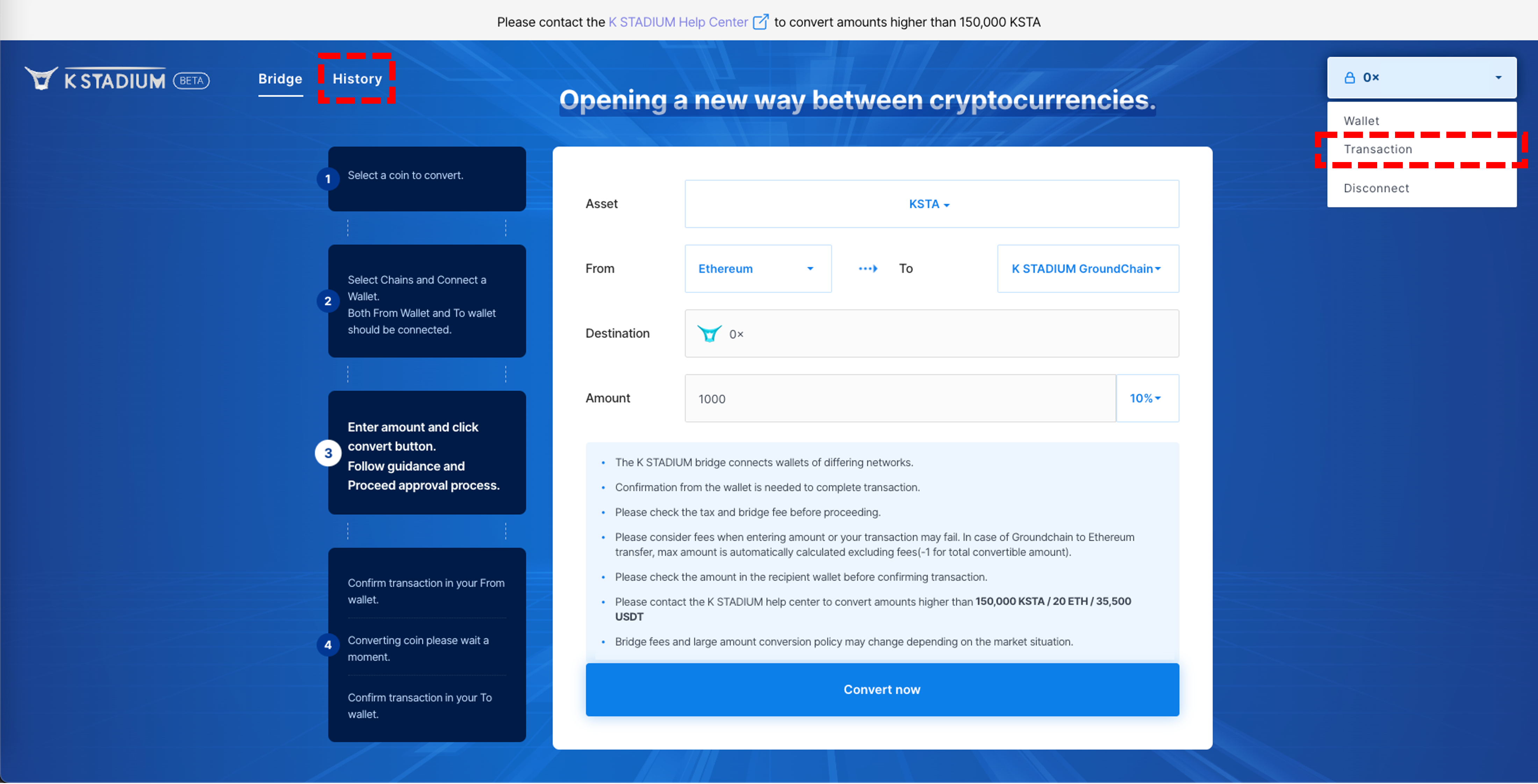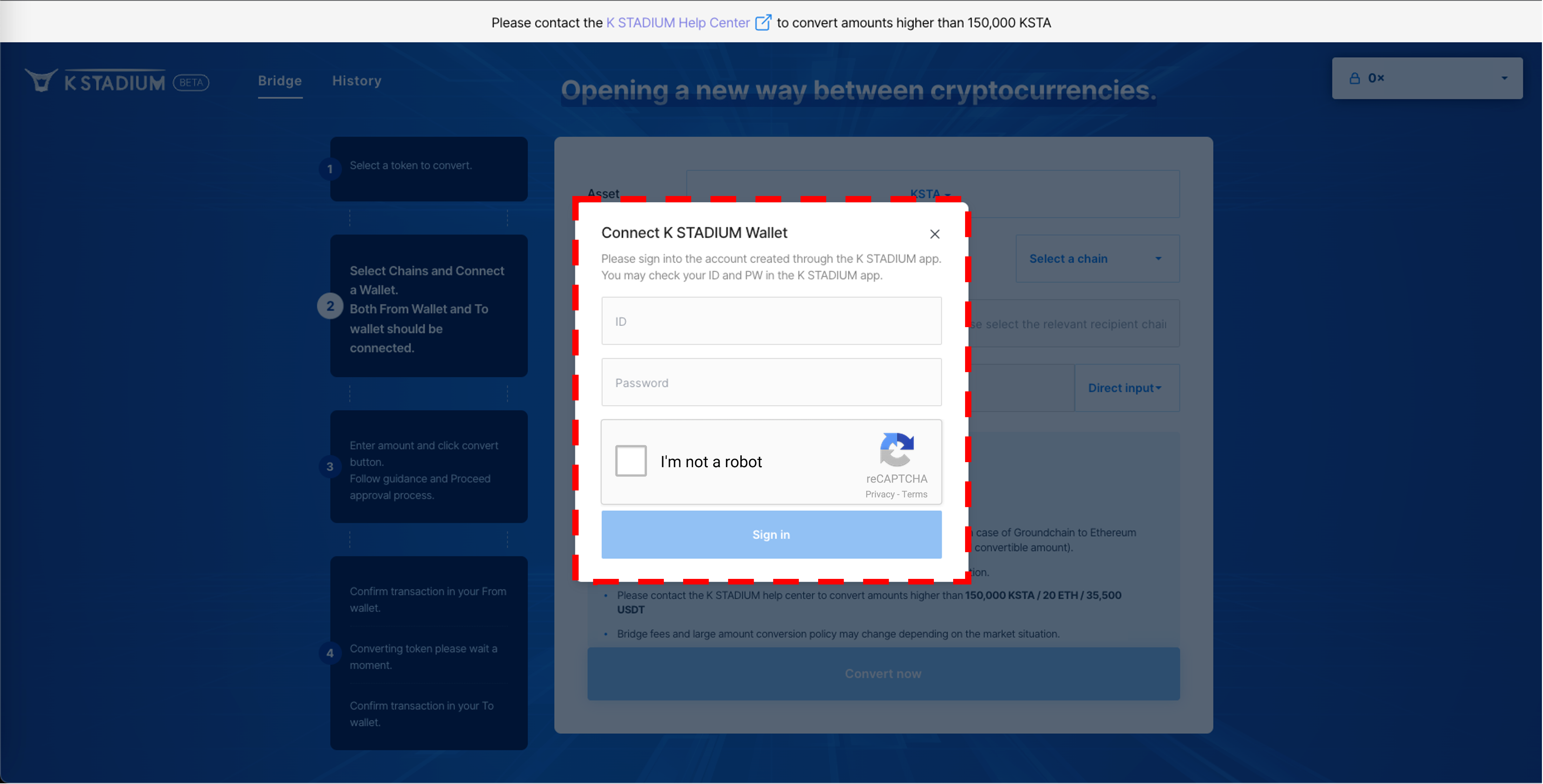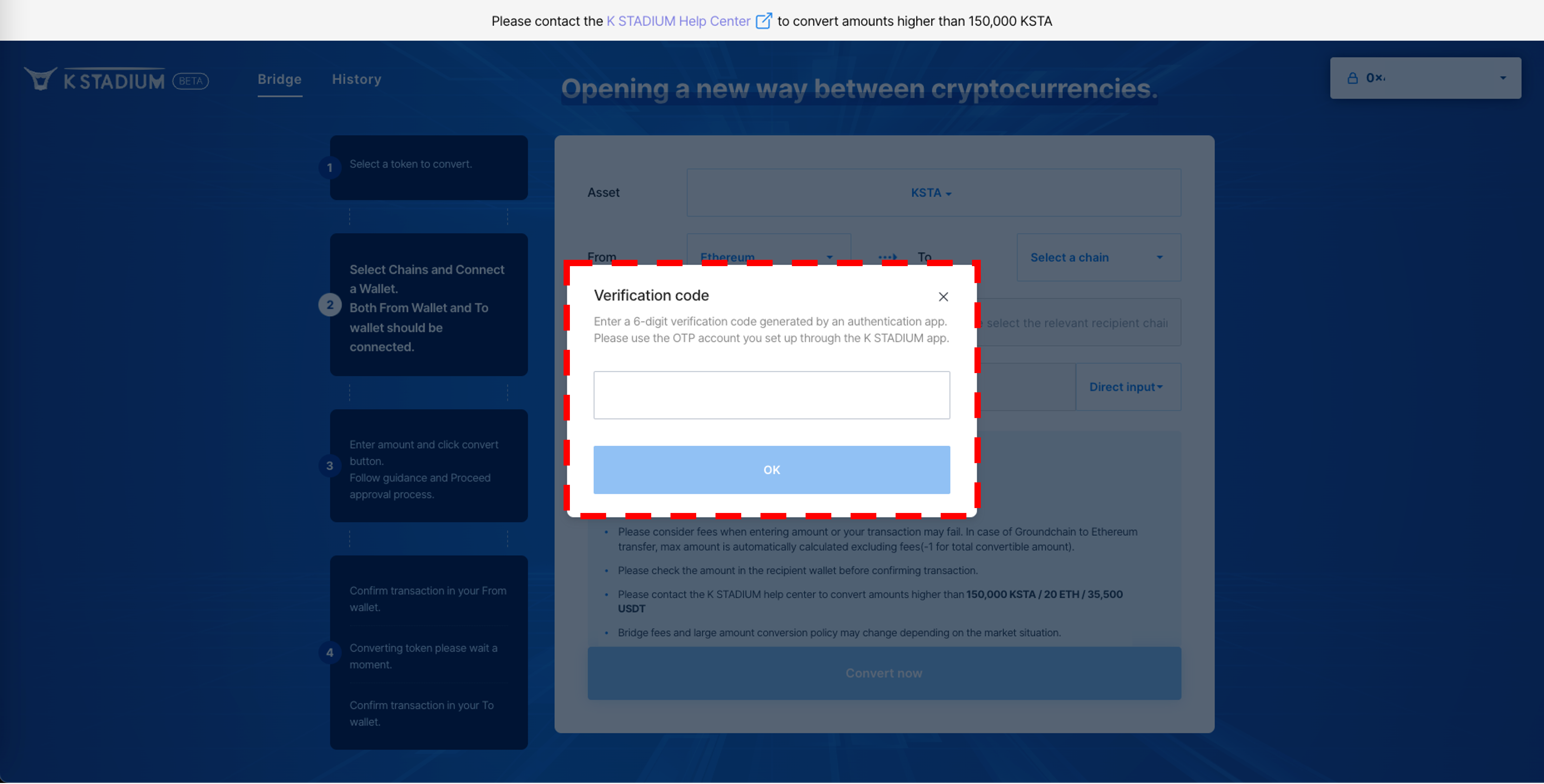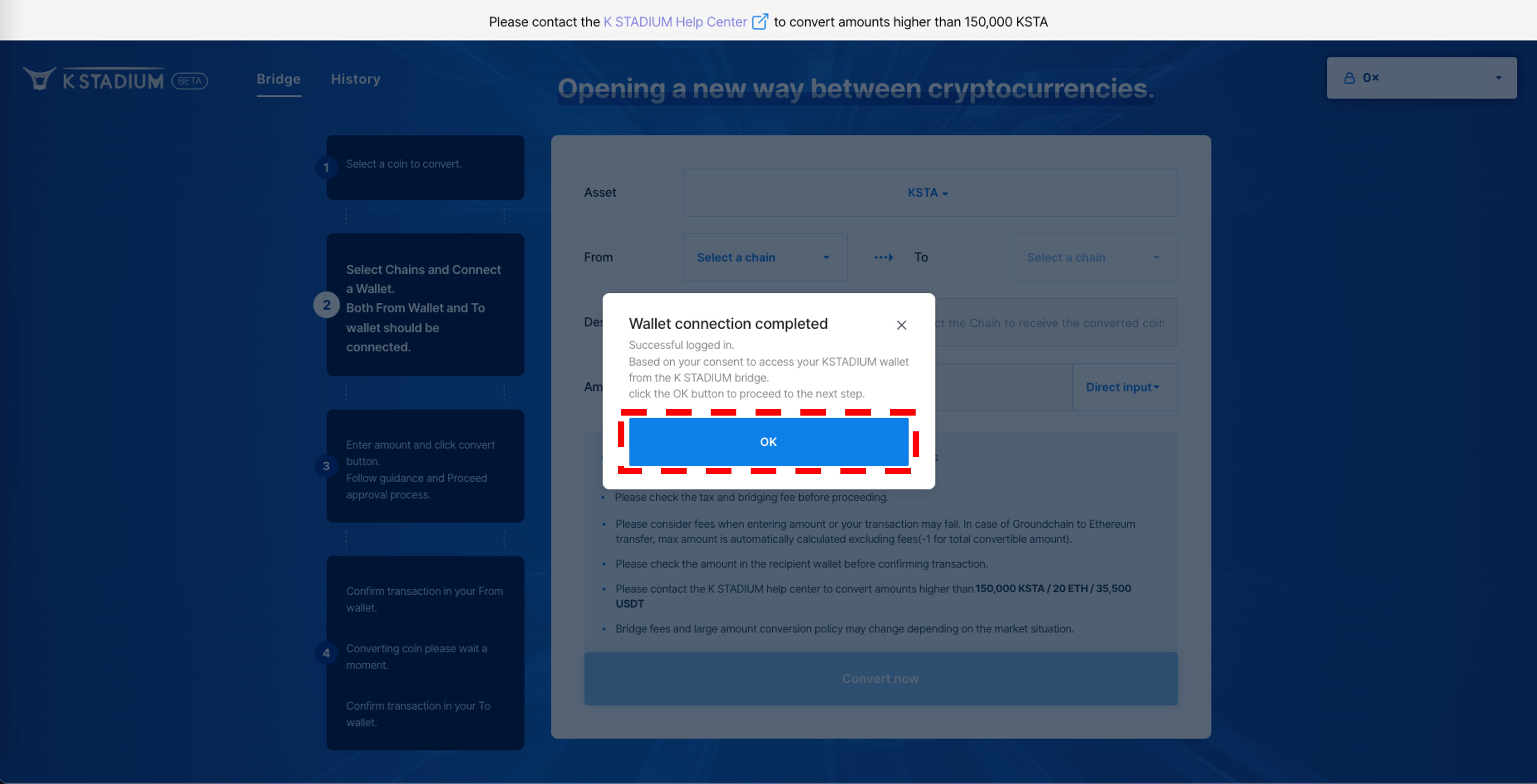 3\. Agree with the precautions, And enter the amount of KSTA you want to remit.