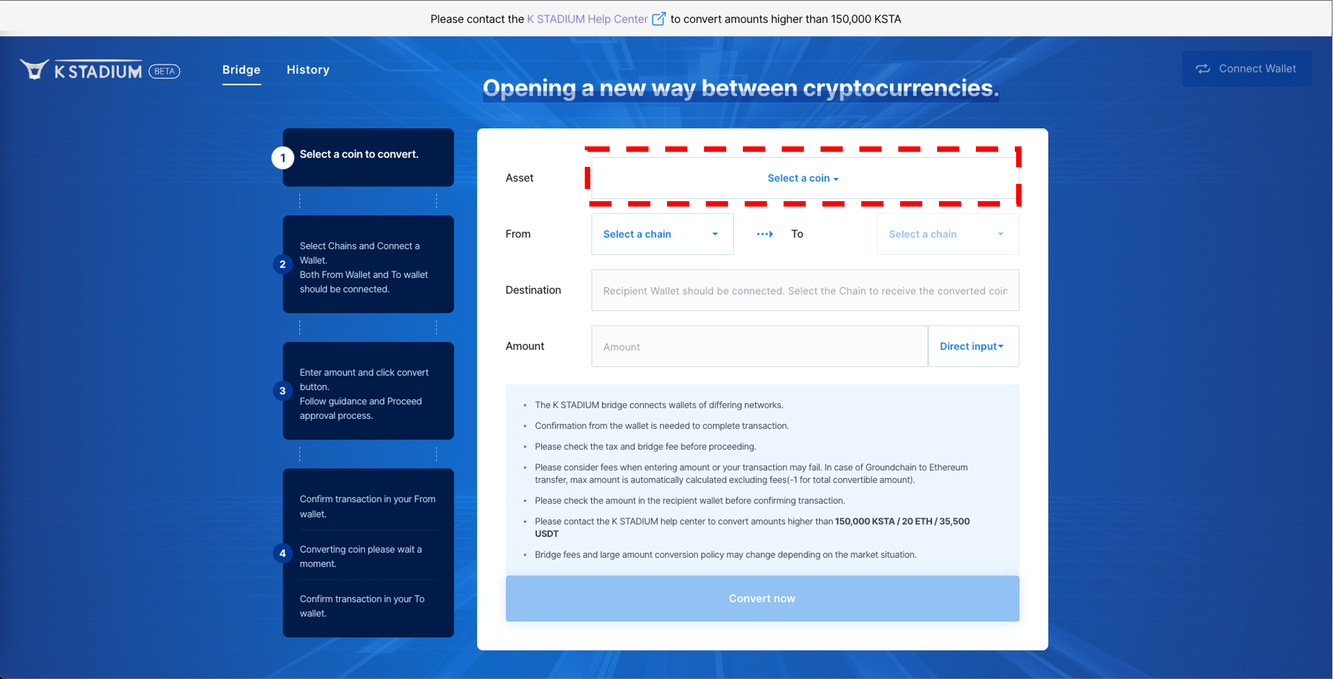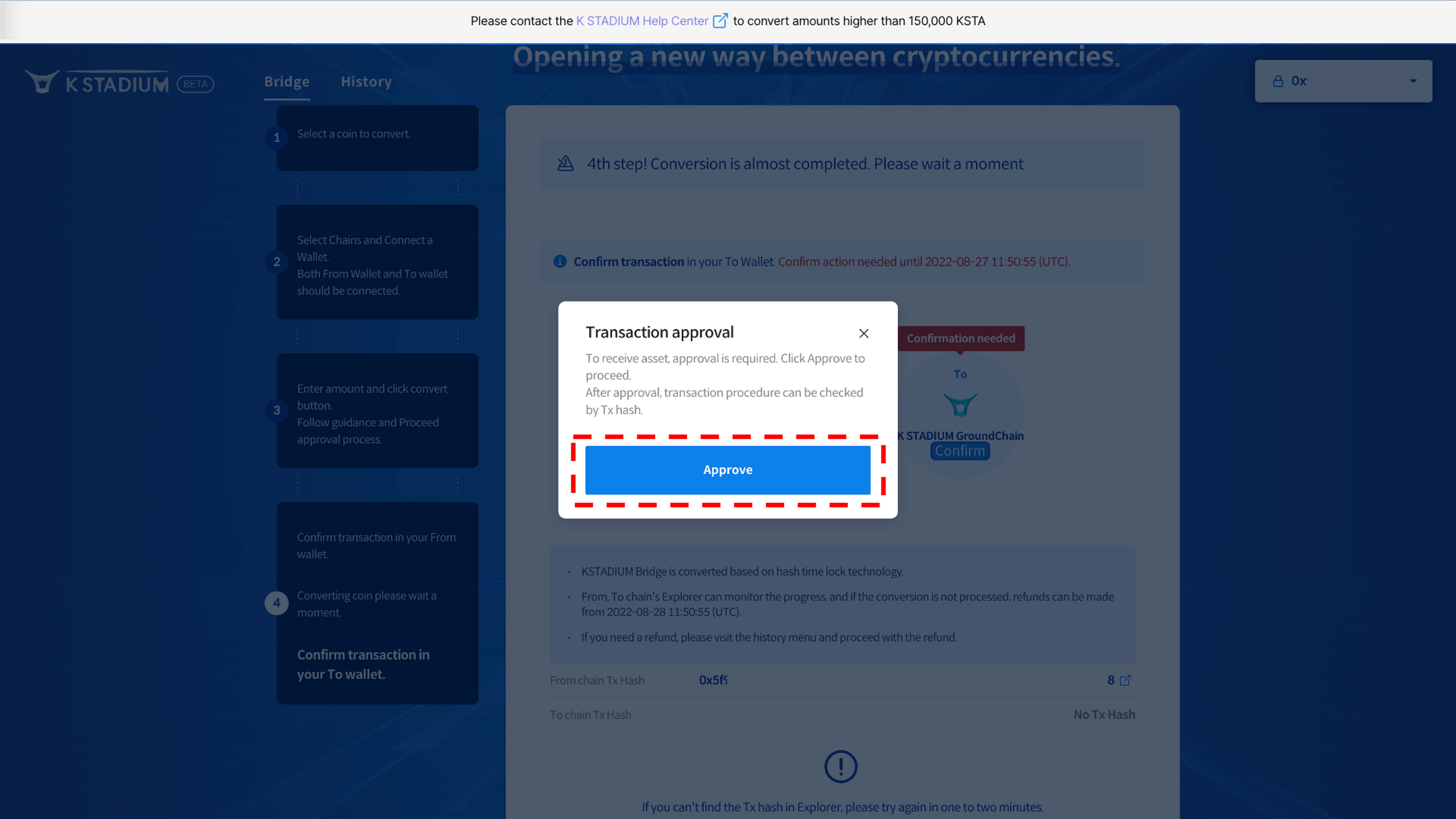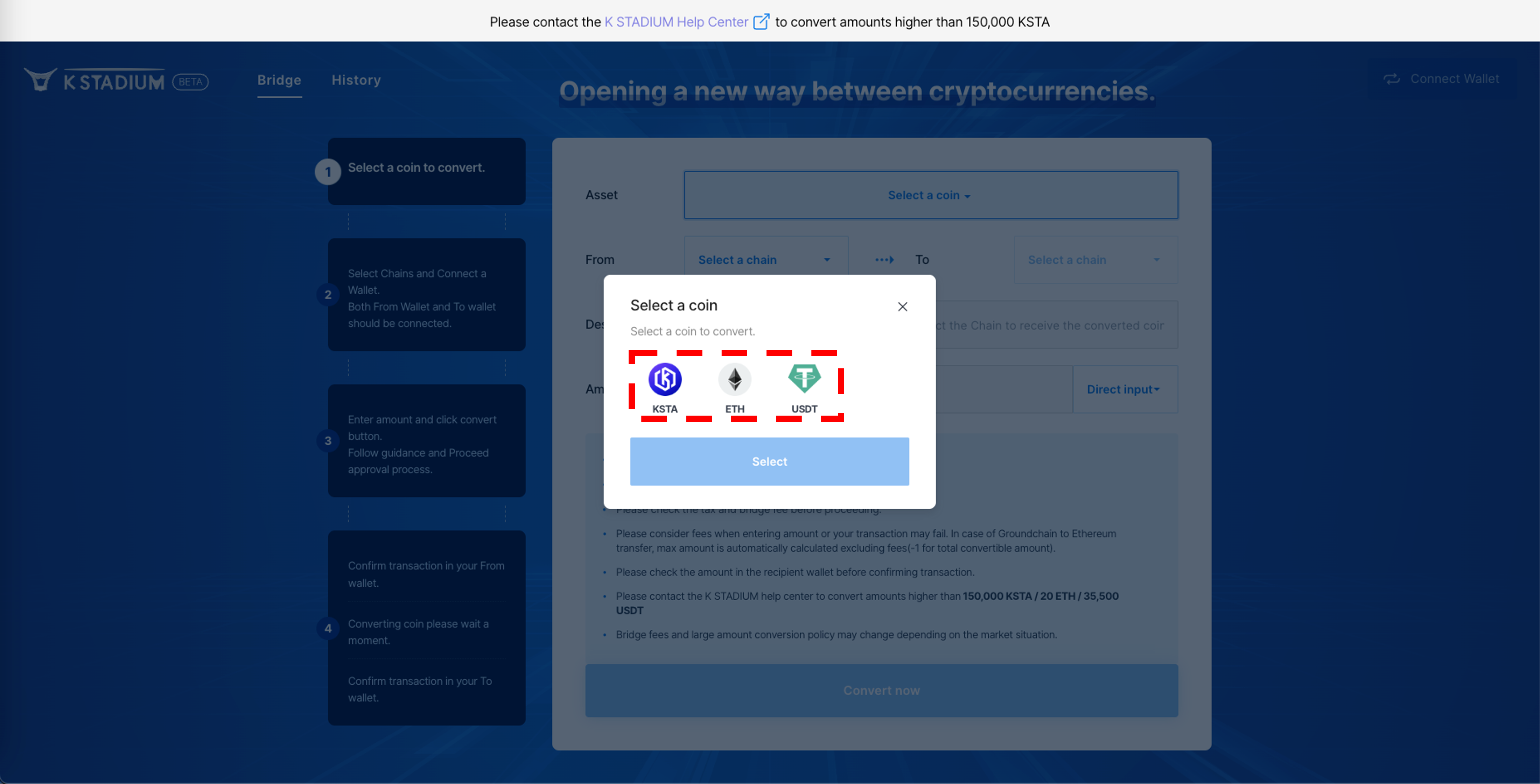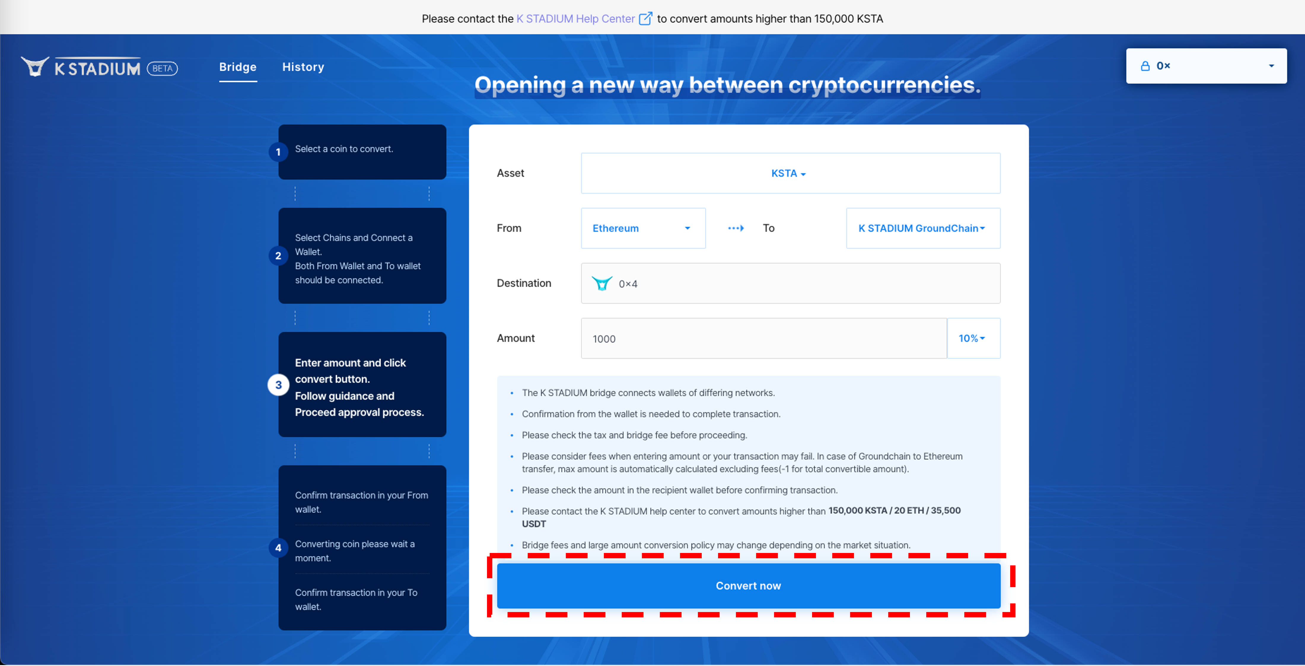 3\. Agree with the precautions, And enter the amount of KSTA you want to remit.