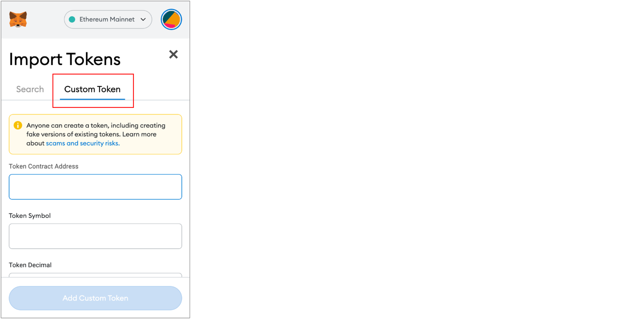 5\. Click the 'Add Custom Token' button.