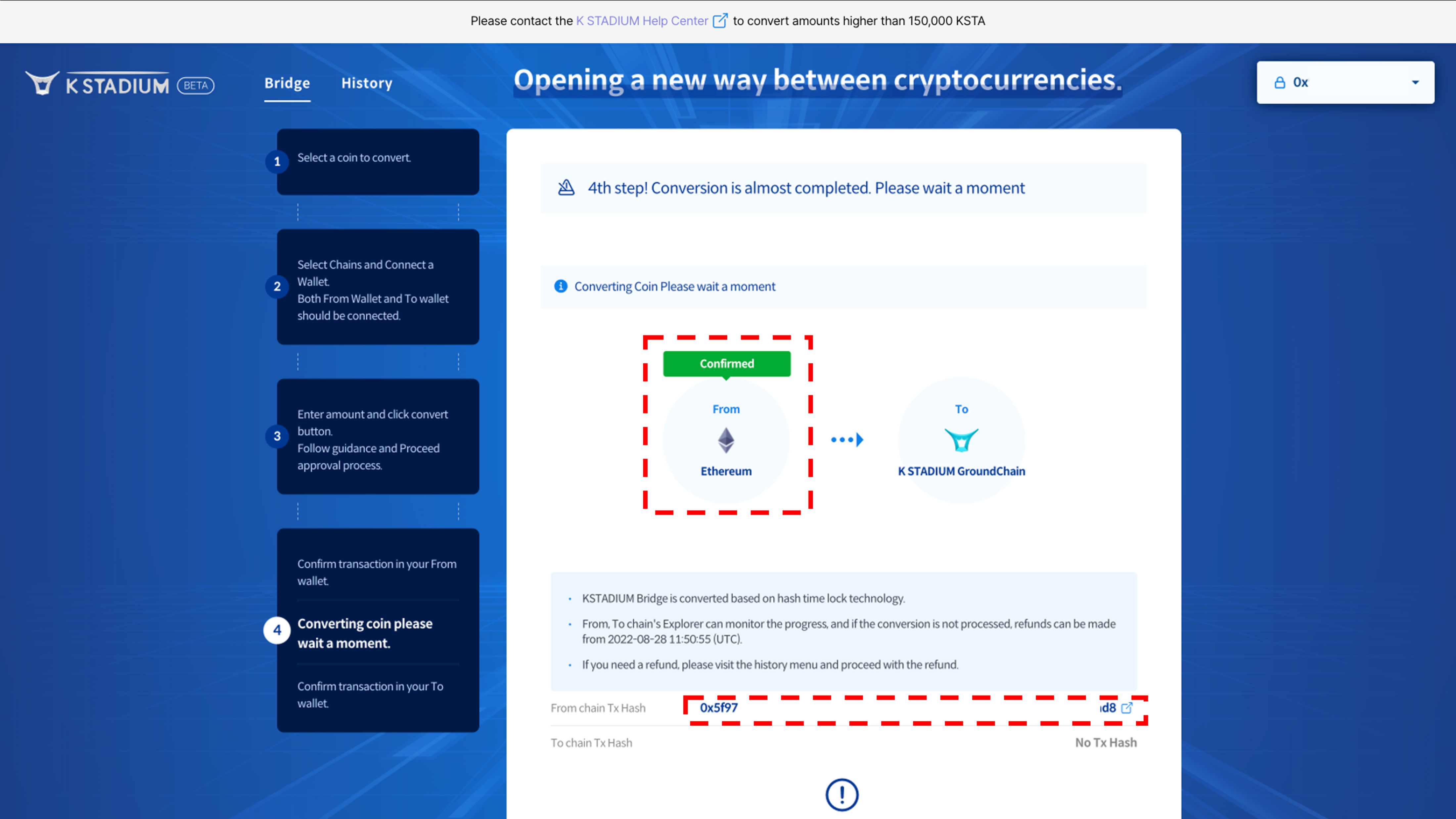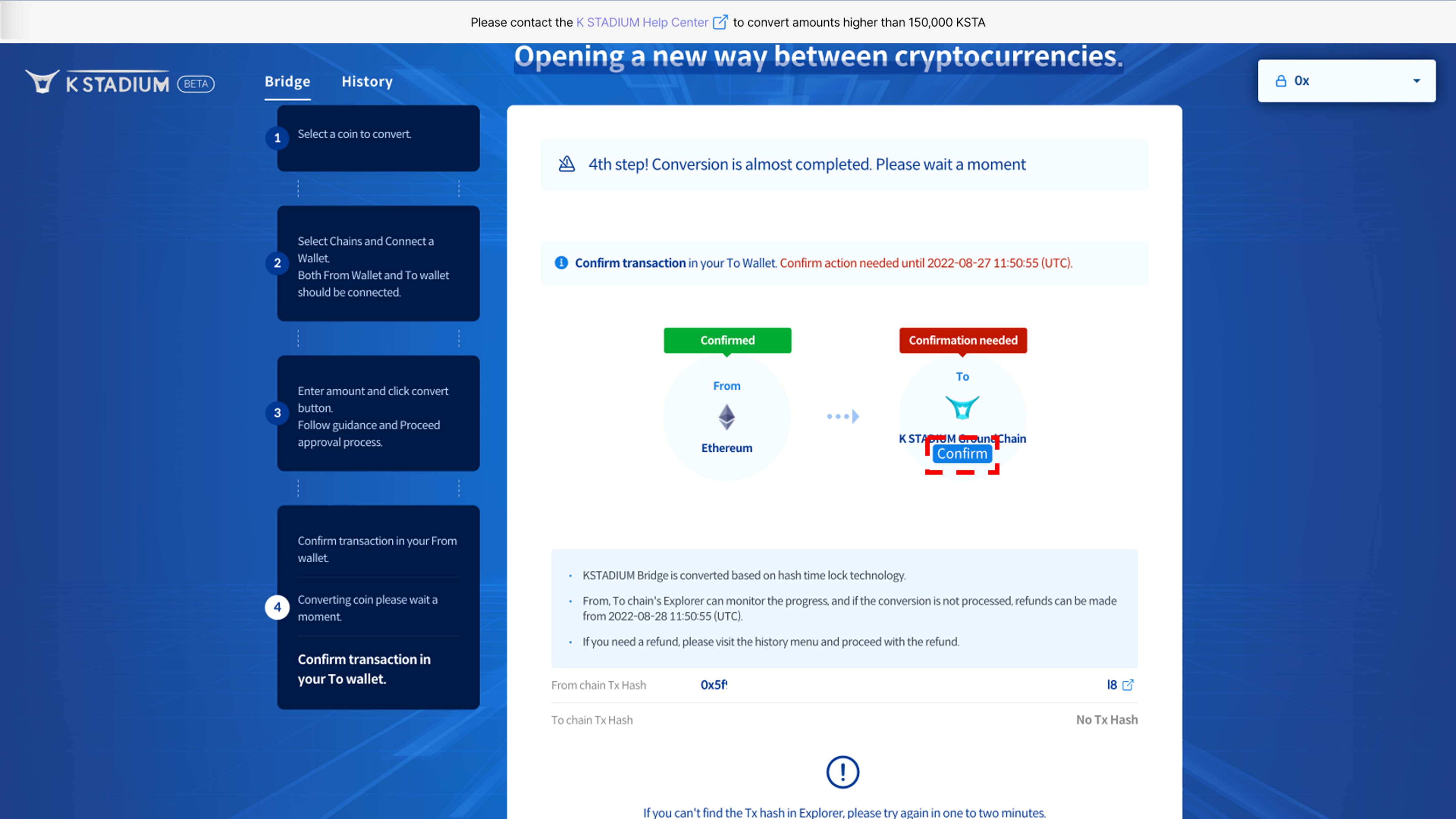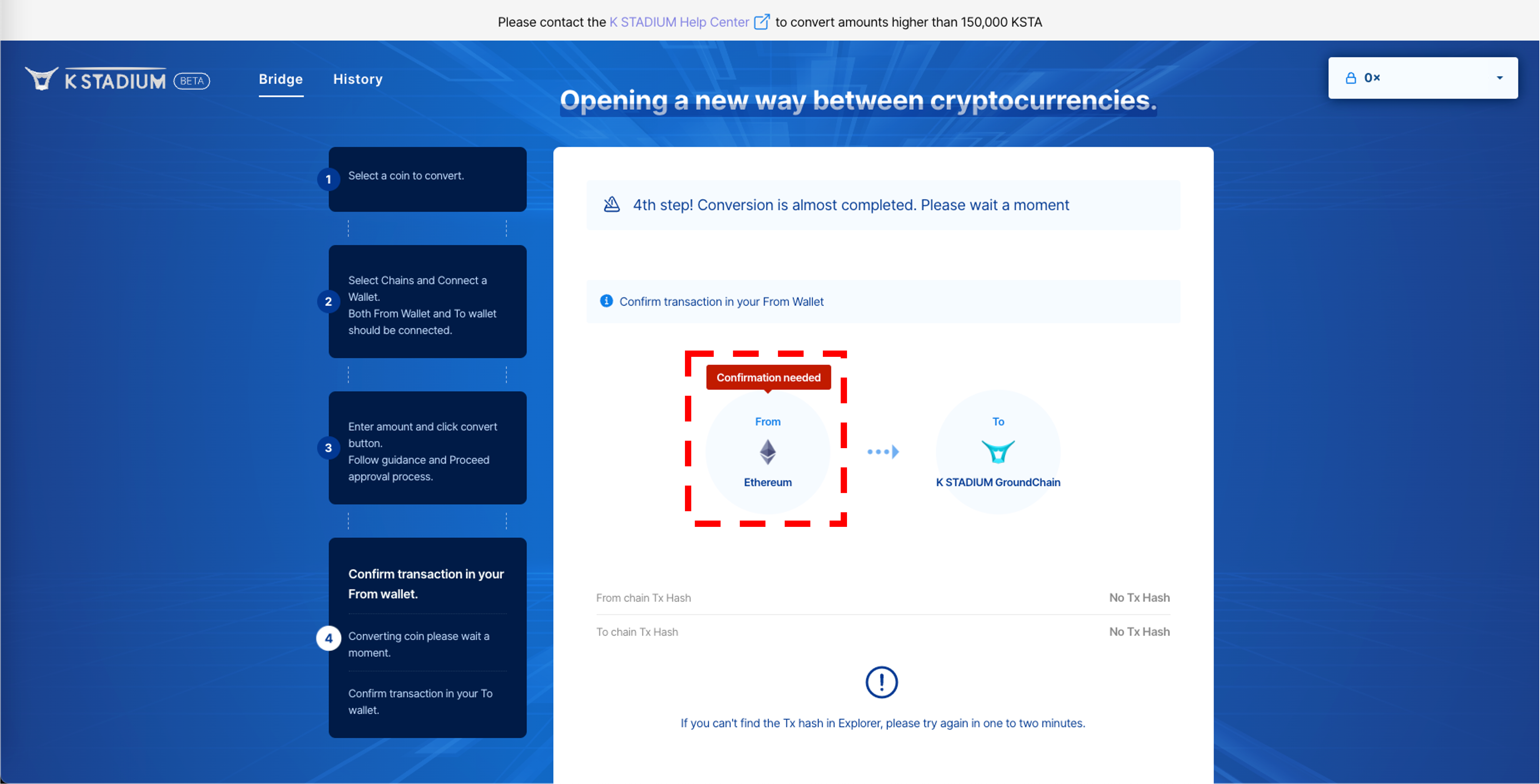 If you make an incorrect deposit, you can’t find Token, so it is recommended to test conversion with a small amount of Token first.