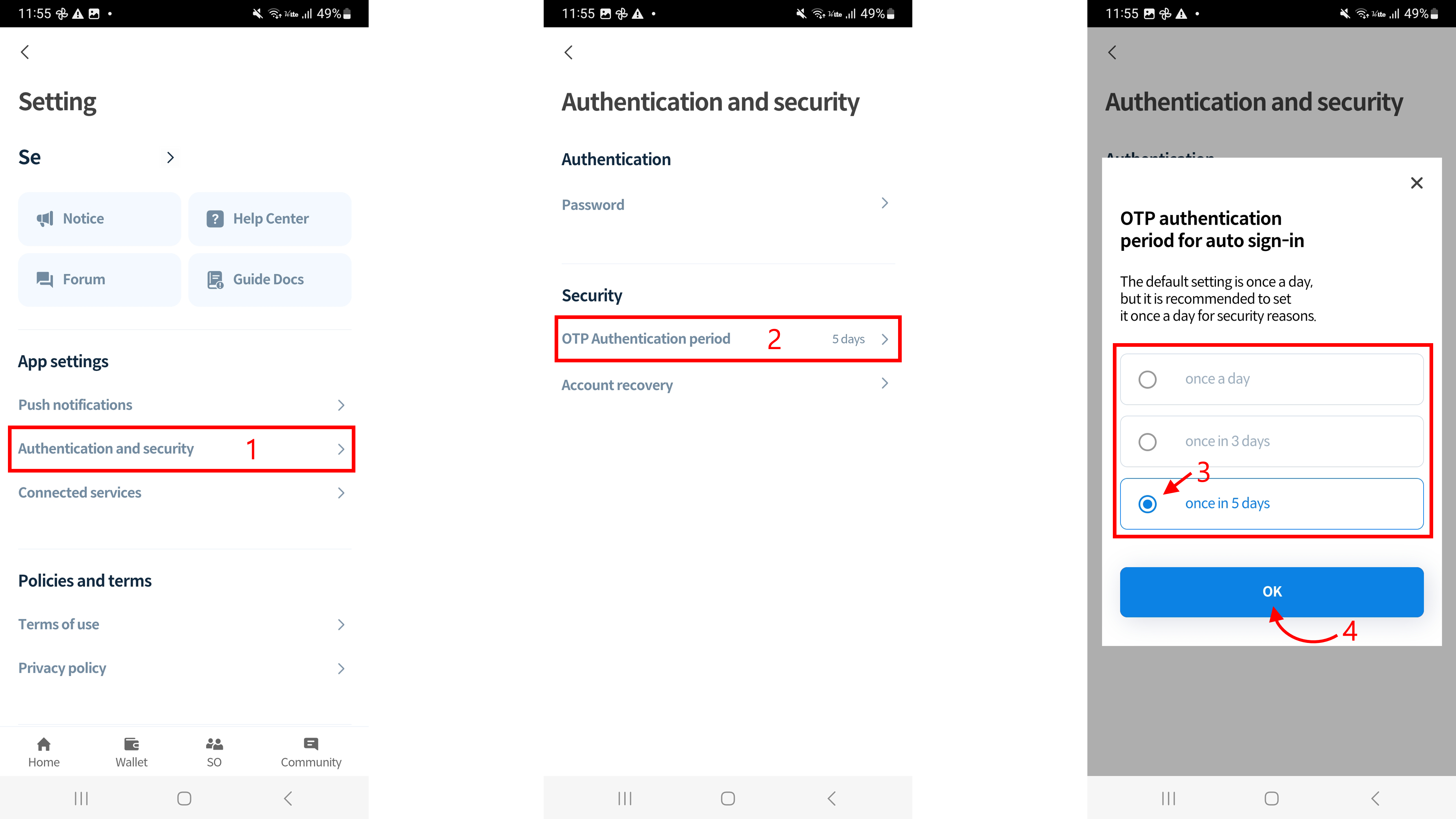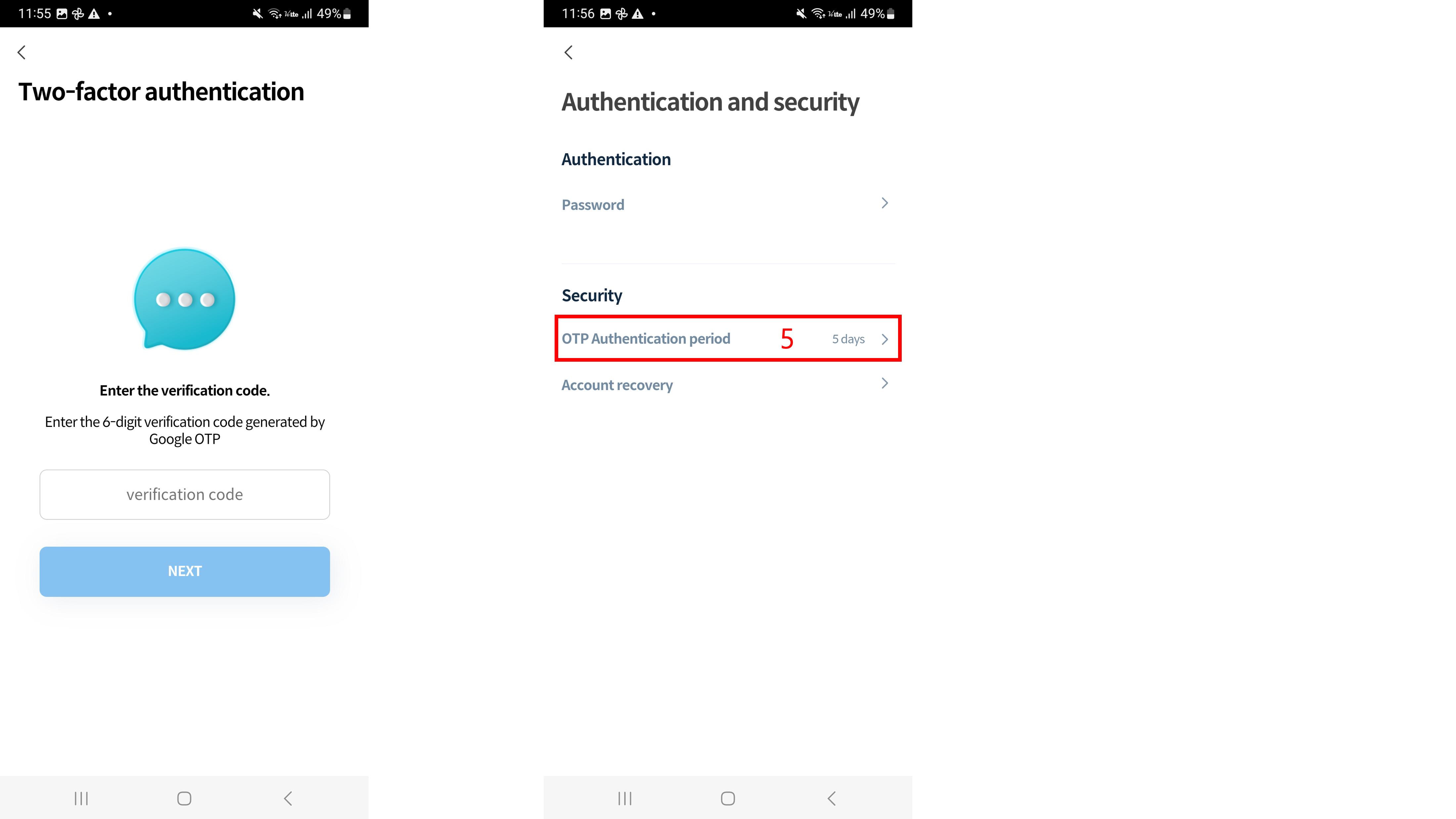 2\. Click 'OTP Authentication period'.