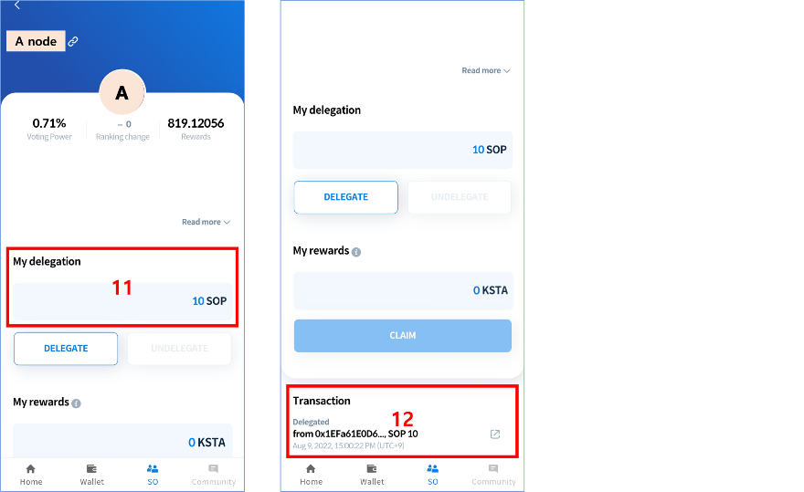 11\. You can check the status and rewards of delegation on the detailed page of the delegated SO.