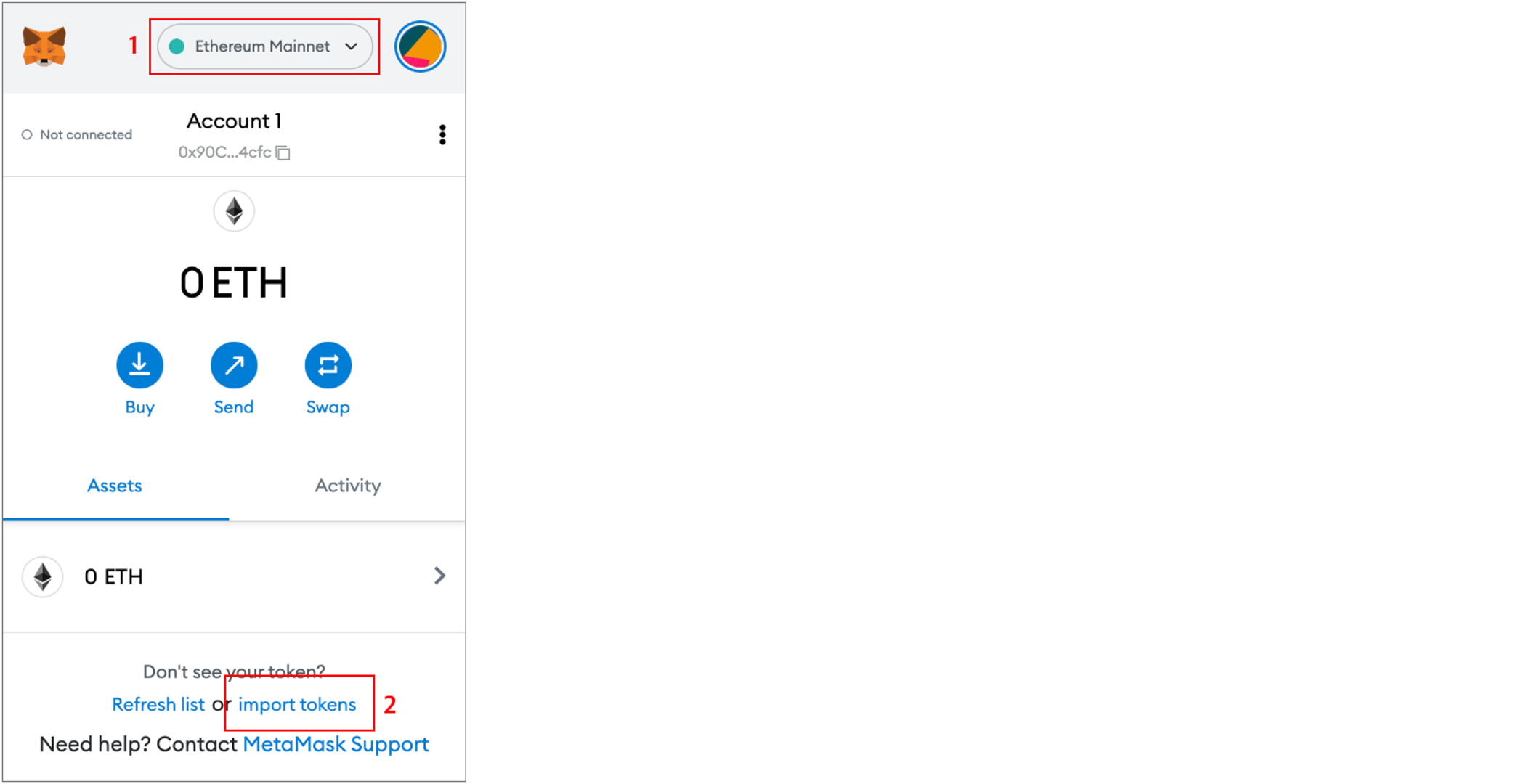 1\. Check the network (Ethereum Mainnet).