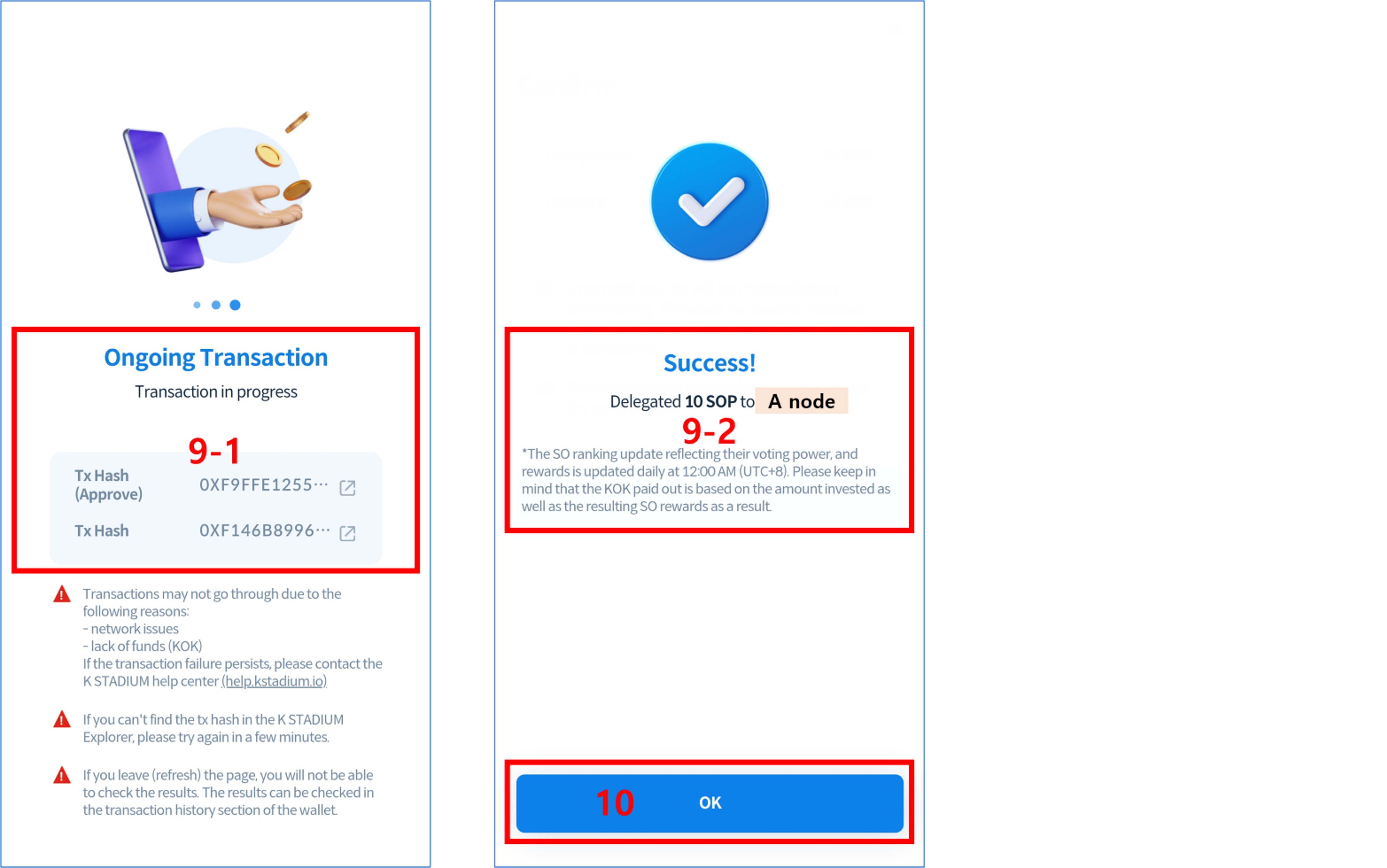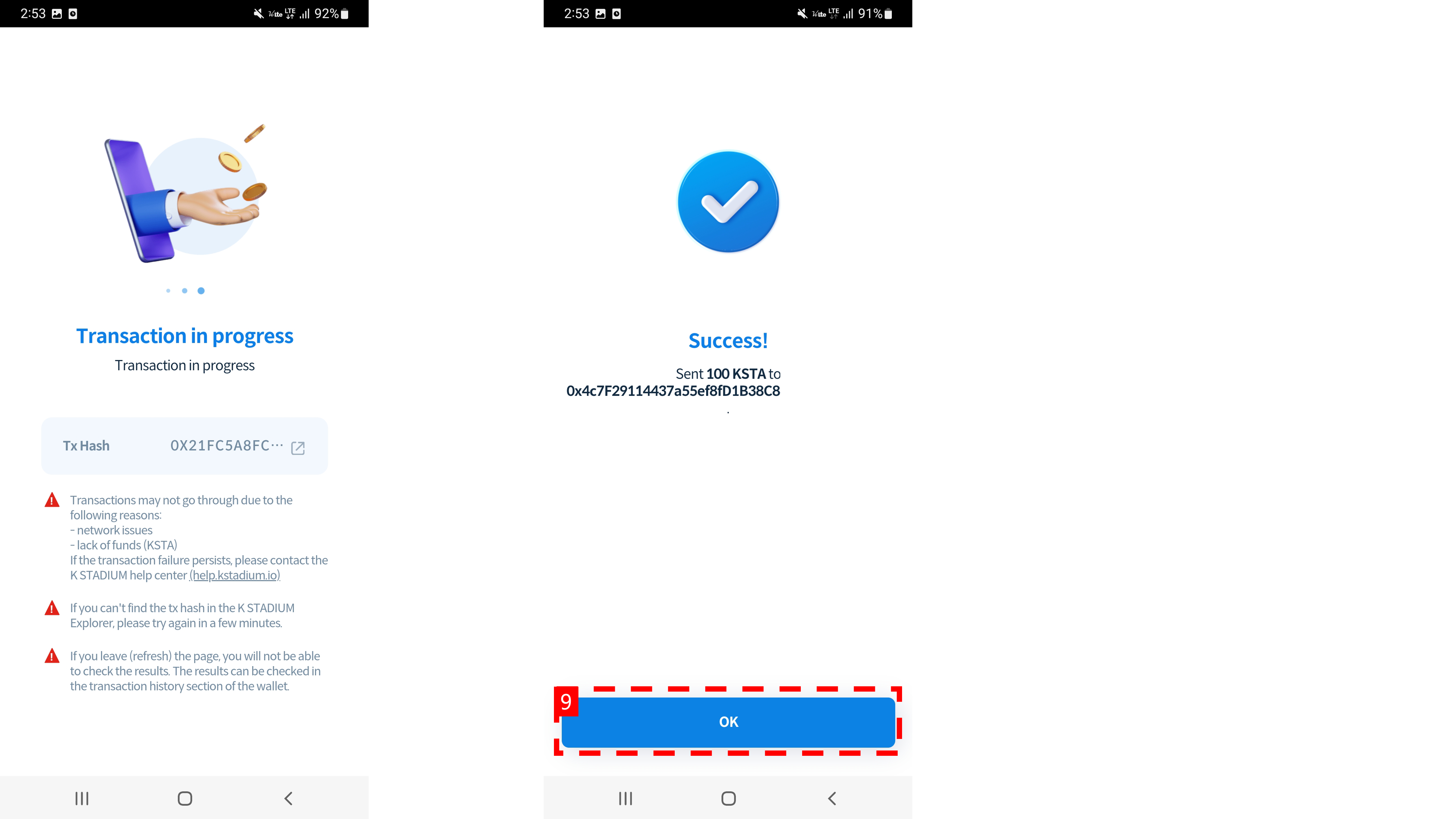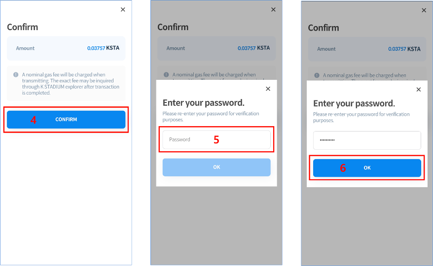 4\. Check the KSTA amount and tap the CONFIRM button.