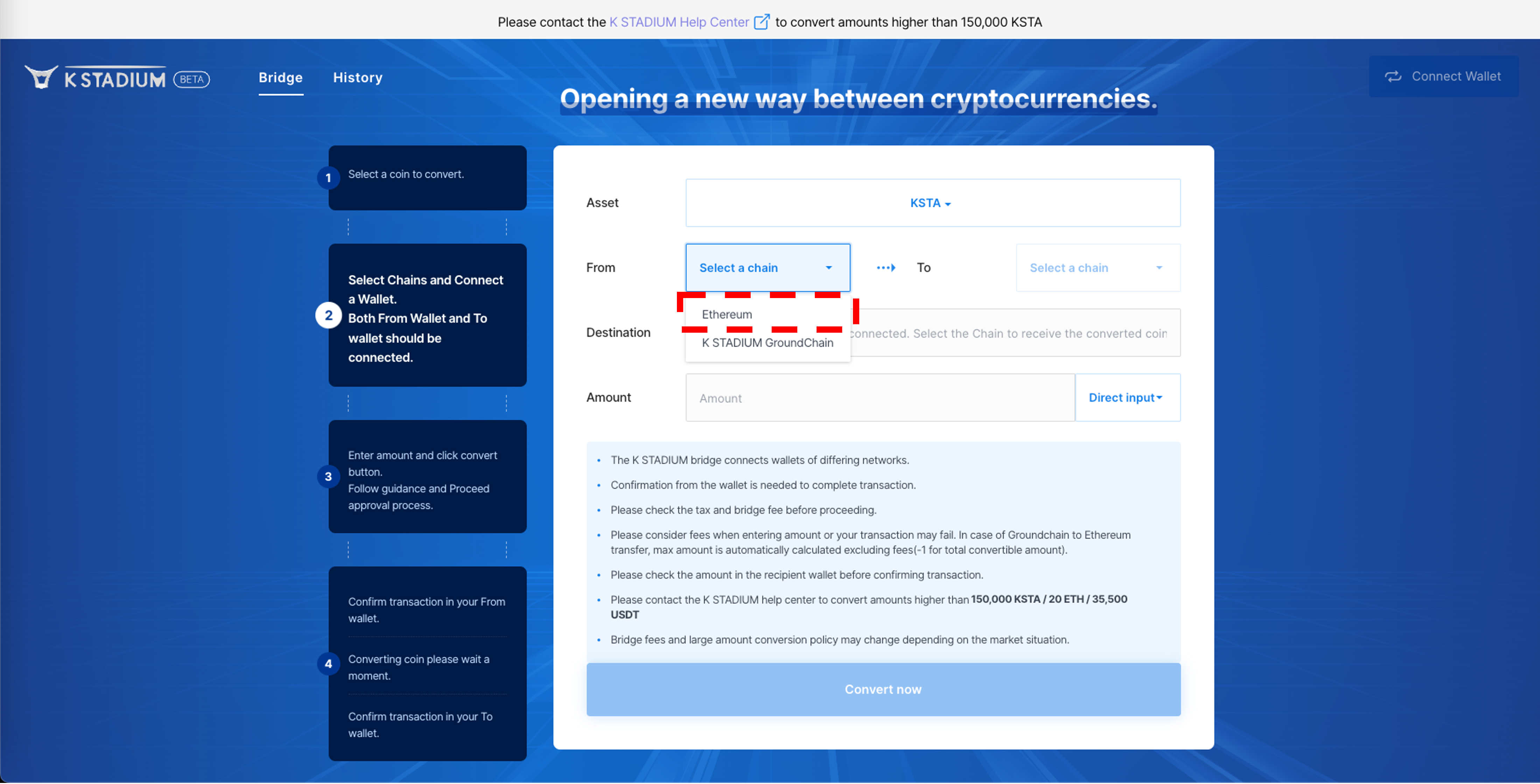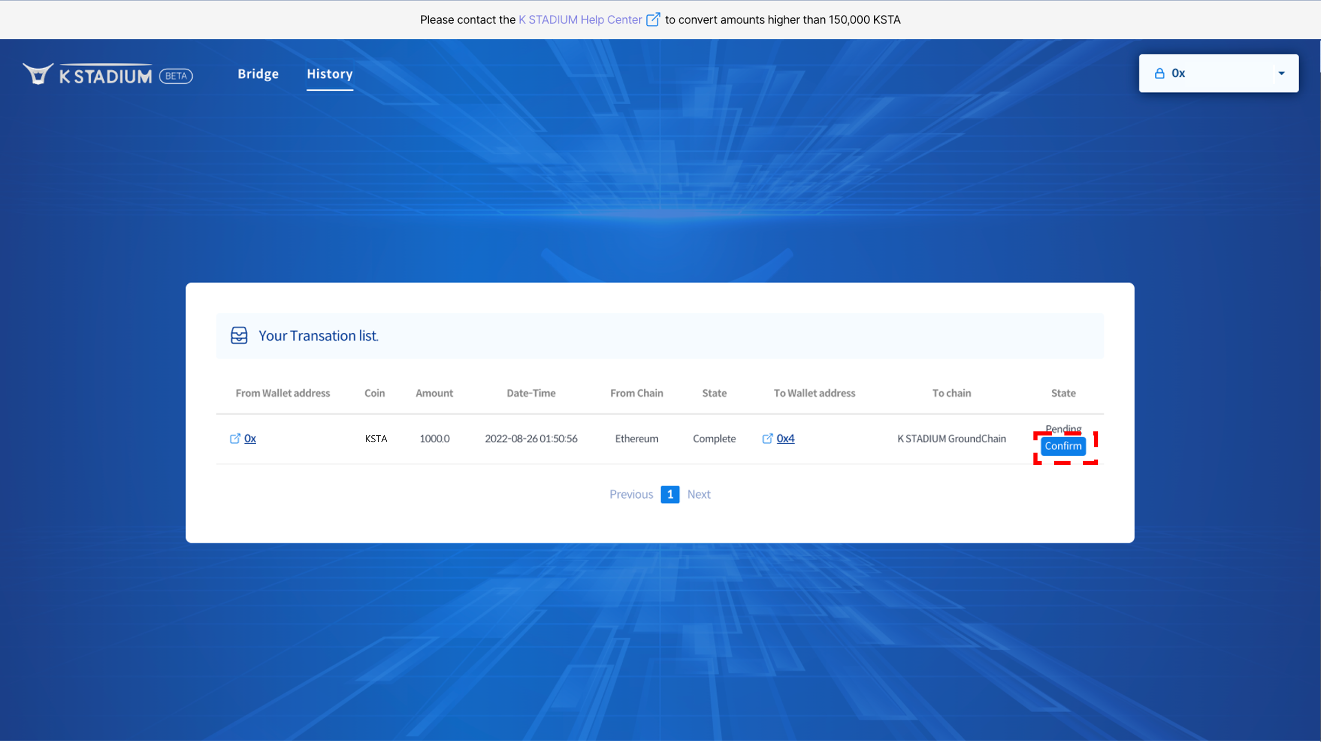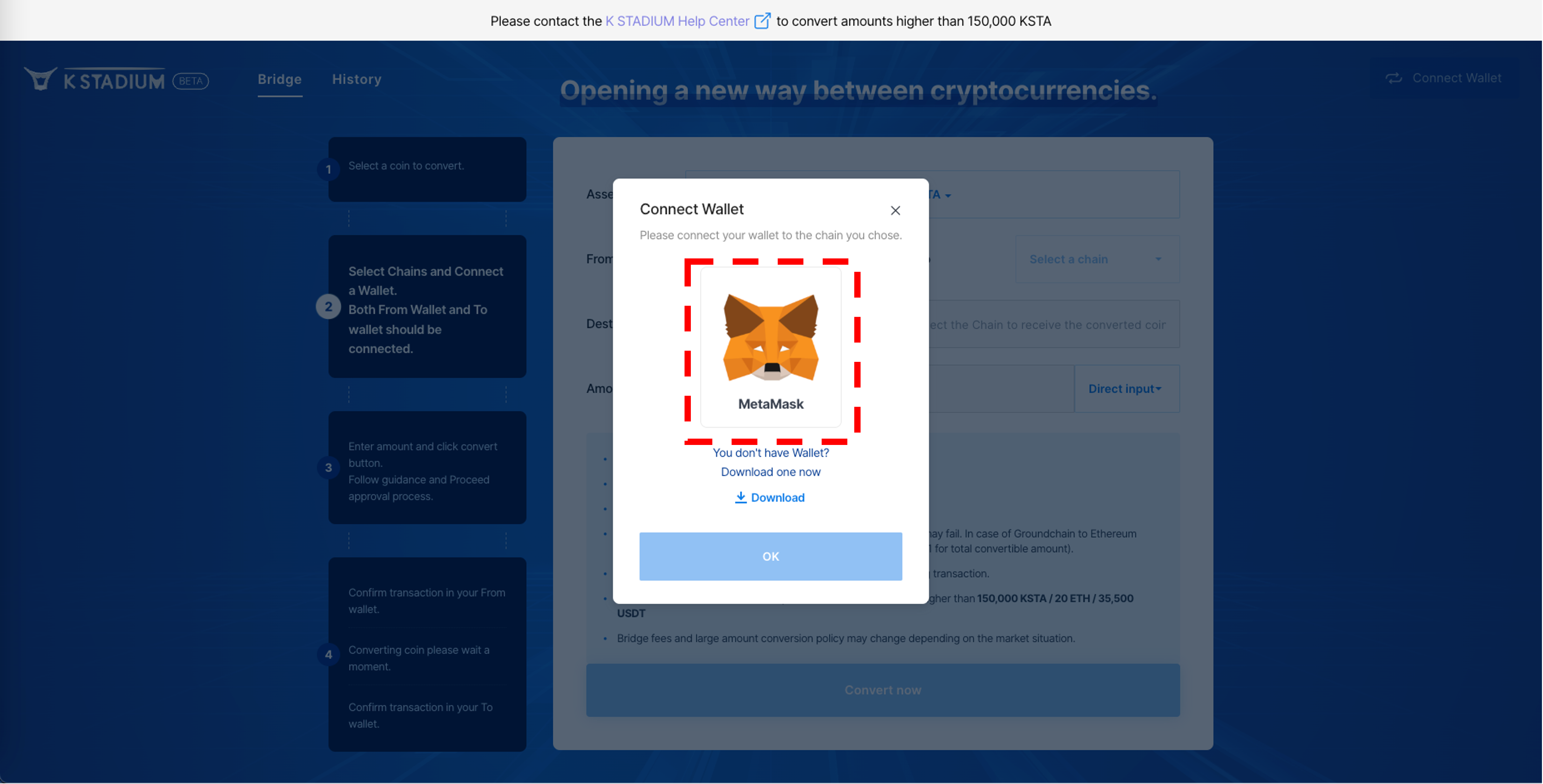 3\. Change KSTA's network using the Bridge. Please refer to [Use Bridge](https://docs.kstadium.io/broken-reference) for more information on how to use it.