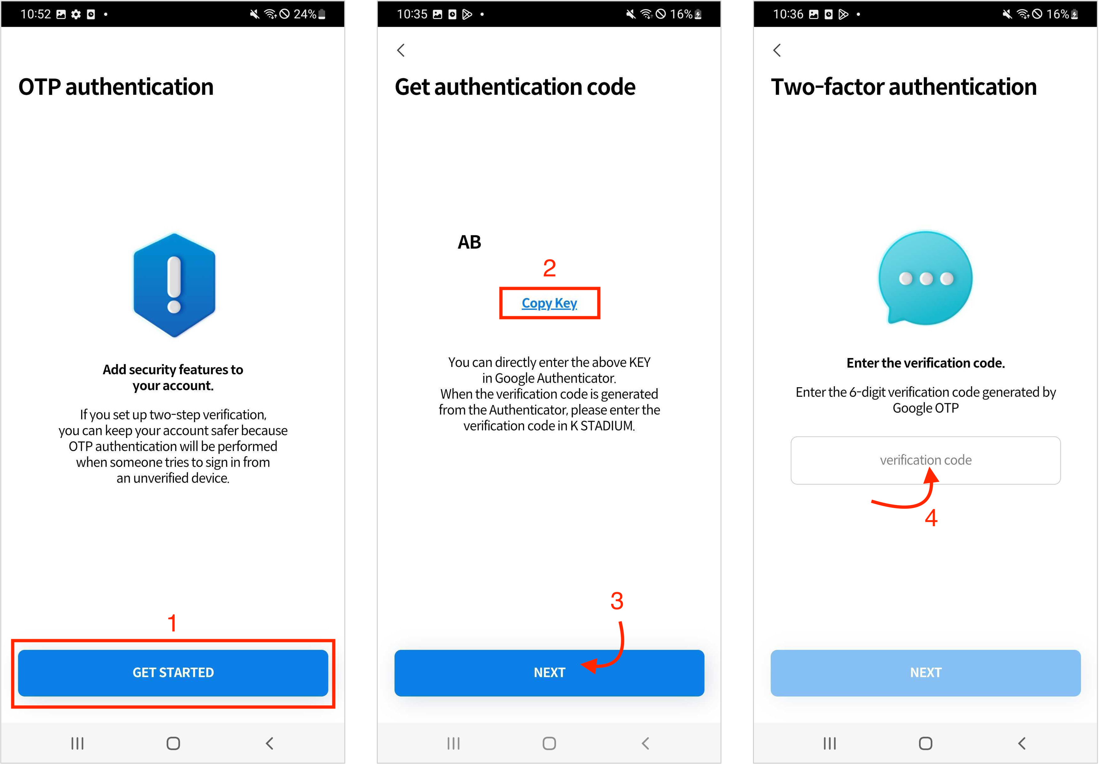 Please download Google Authenticator to use OTP at K STADIUM app