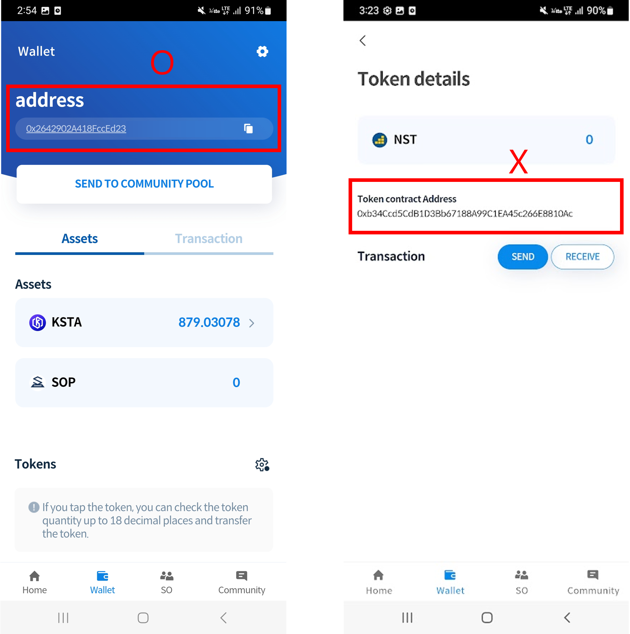 2. Please note that when NST and KSTA are sent to the Token Contract Address, recovery is not possible.